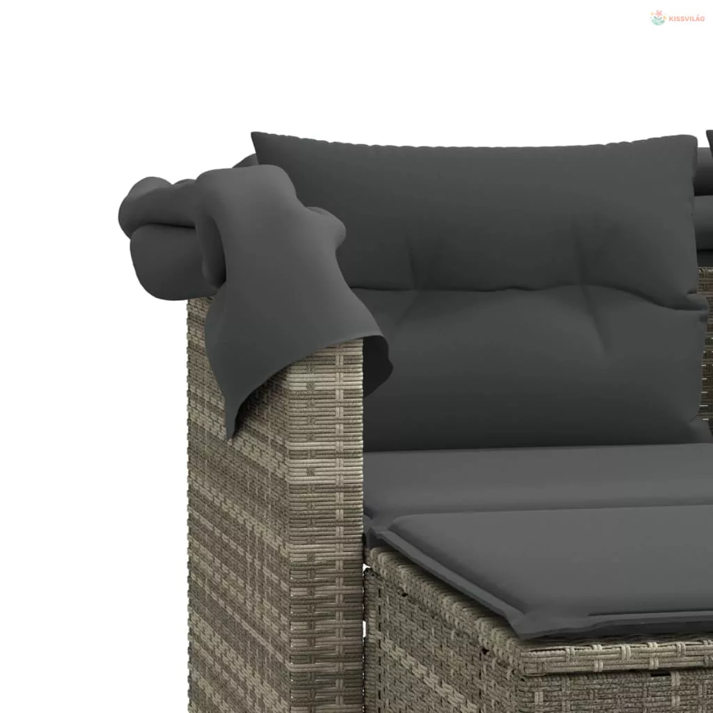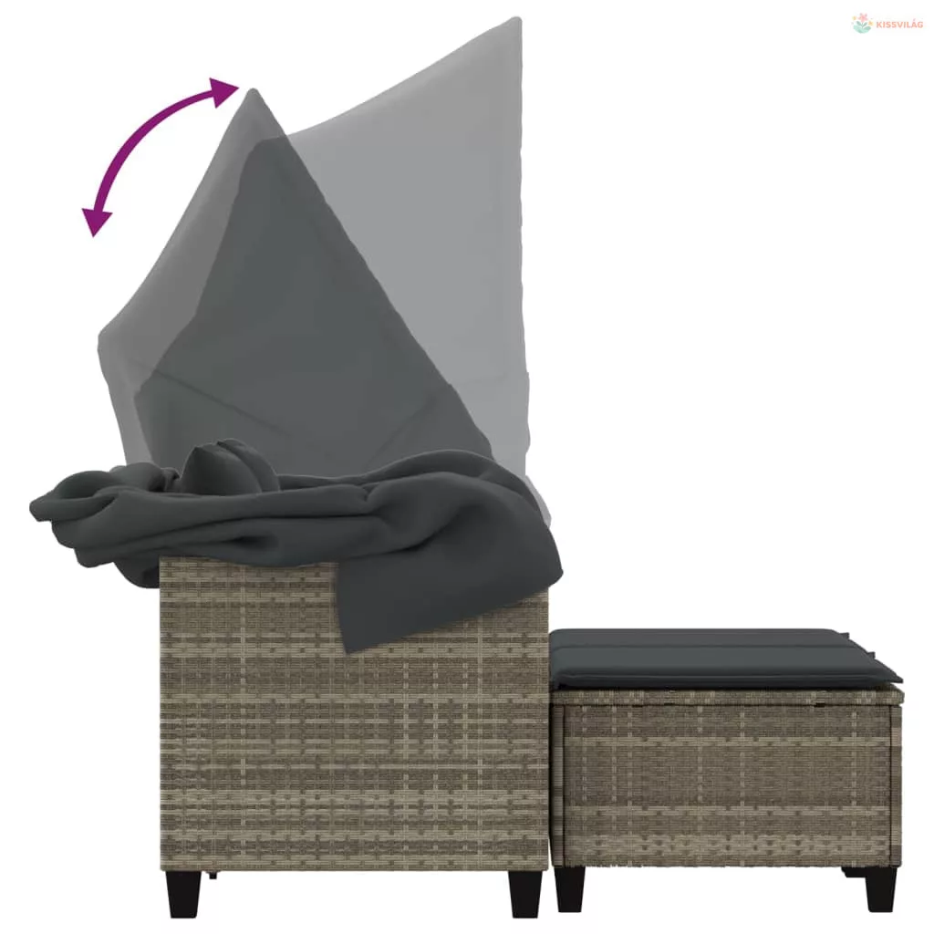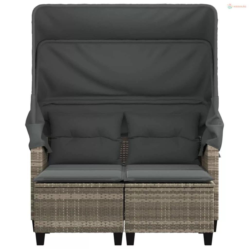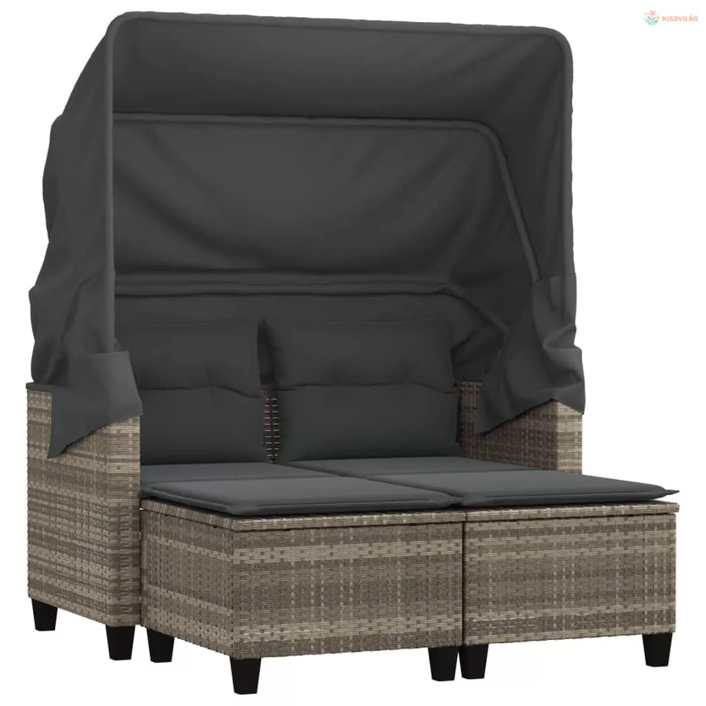 2 személyes szürke polyrattan kerti kanapé baldachinnal/székkel