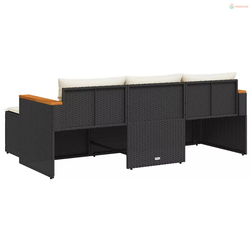 3 részes fekete polyrattan kerti ülőgarnitúra párnával
