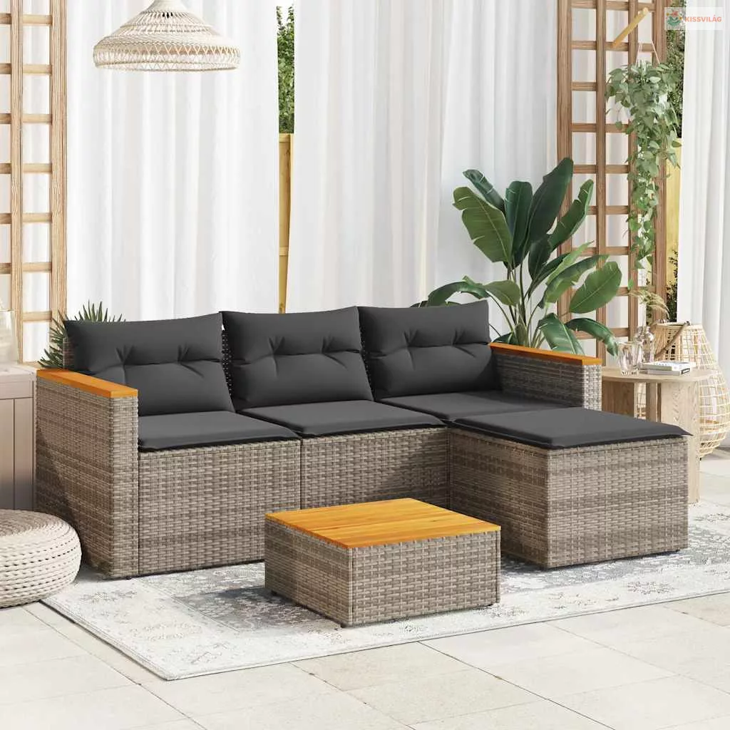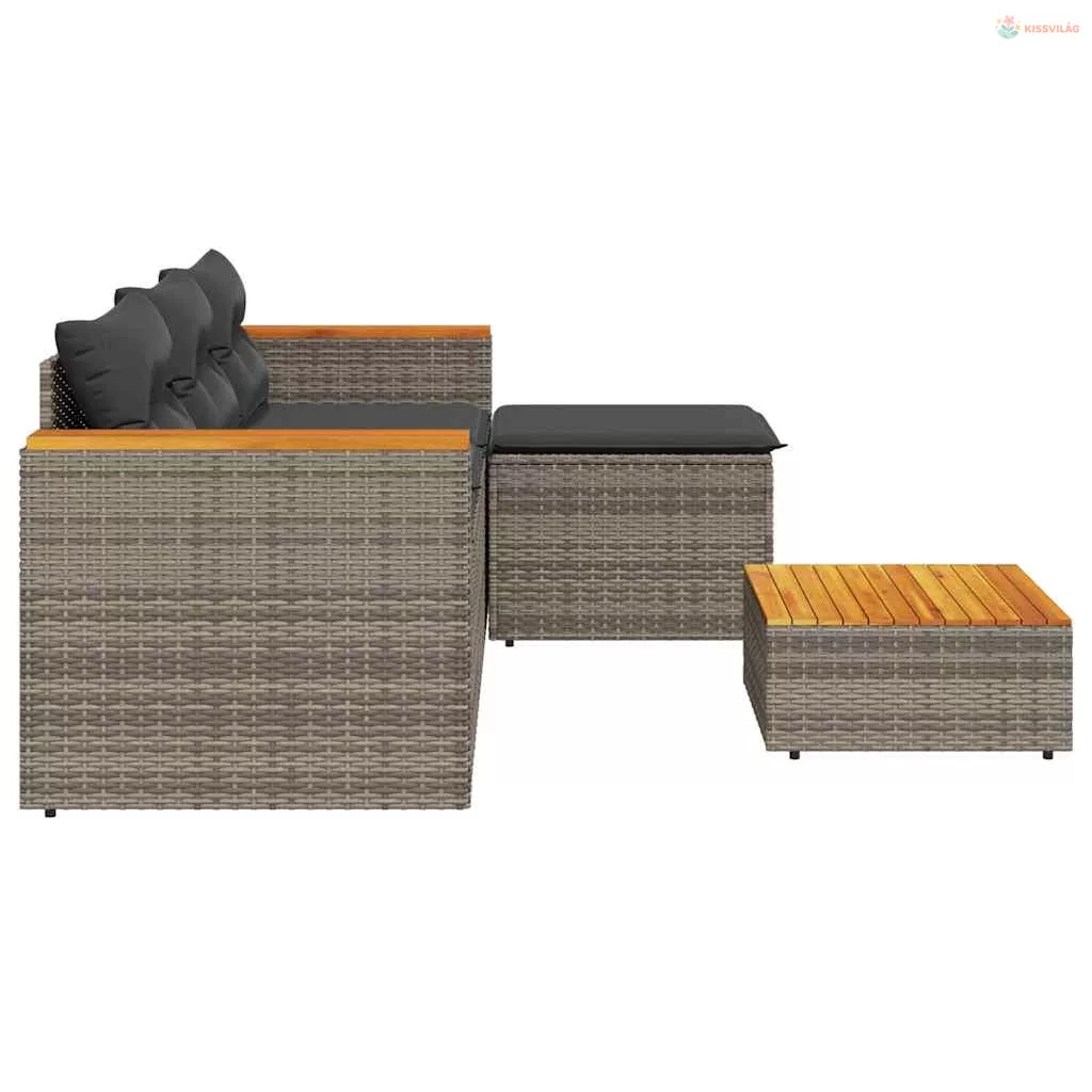 3 részes szürke polyrattan kerti ülőgarnitúra párnákkal