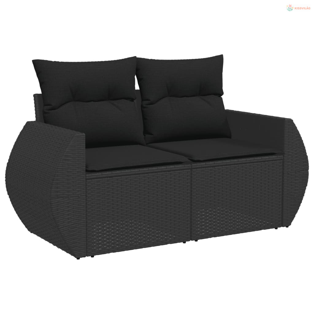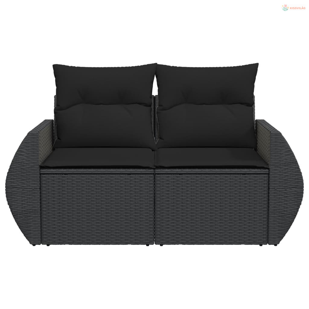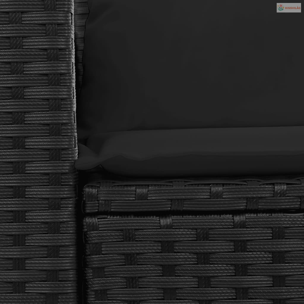 2 személyes fekete polyrattan kerti kanapé párnával