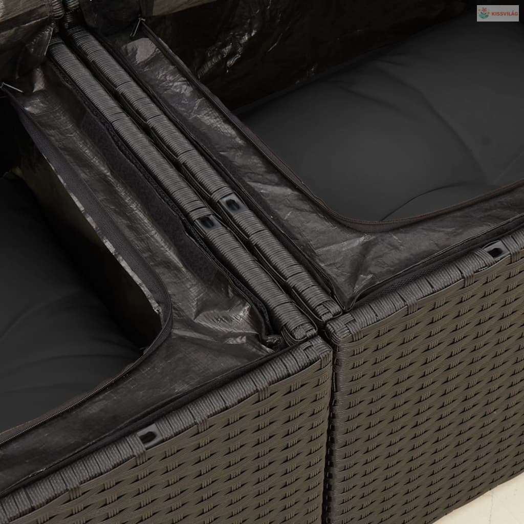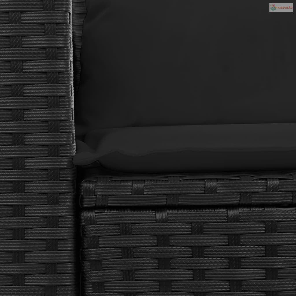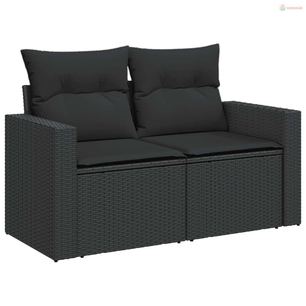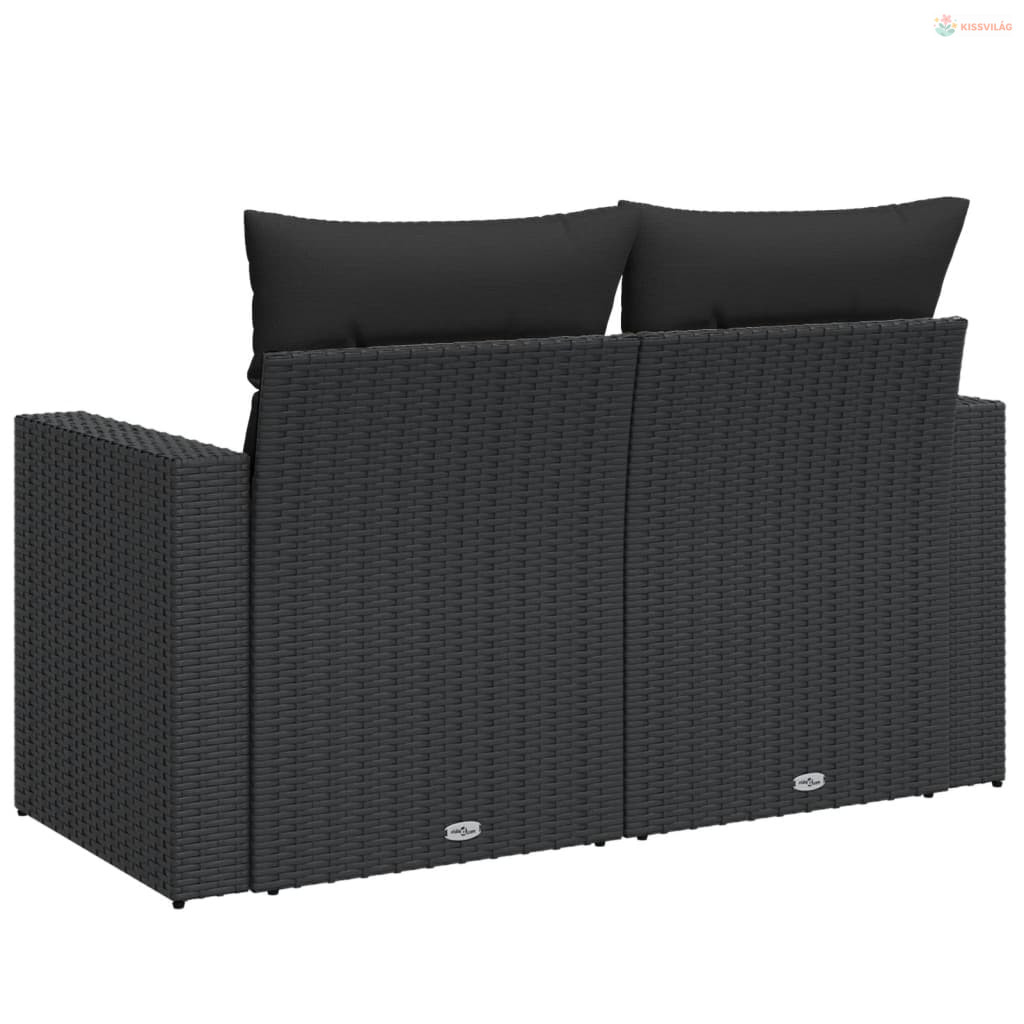 Kétszemélyes fekete polyrattan kerti kanapé párnákkal