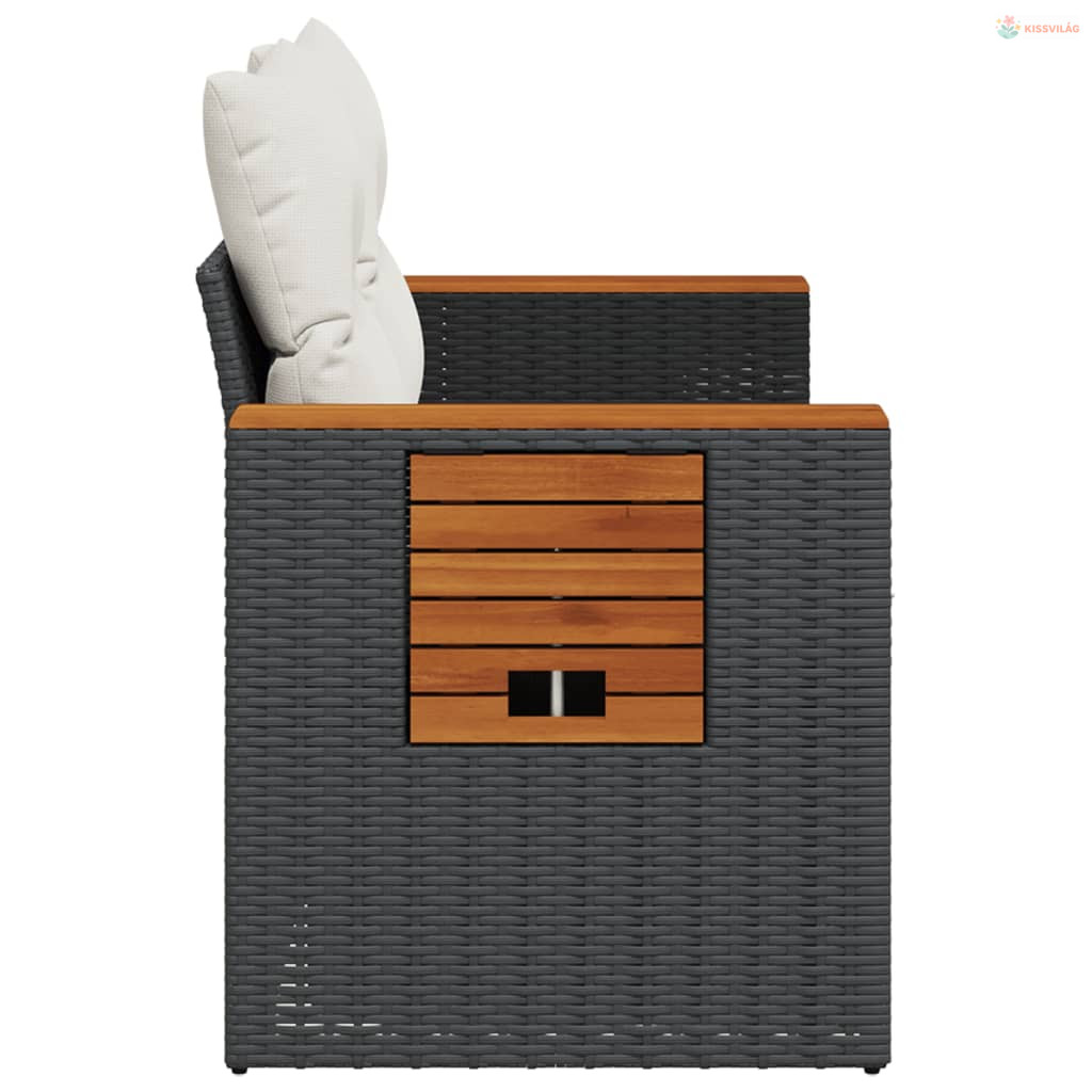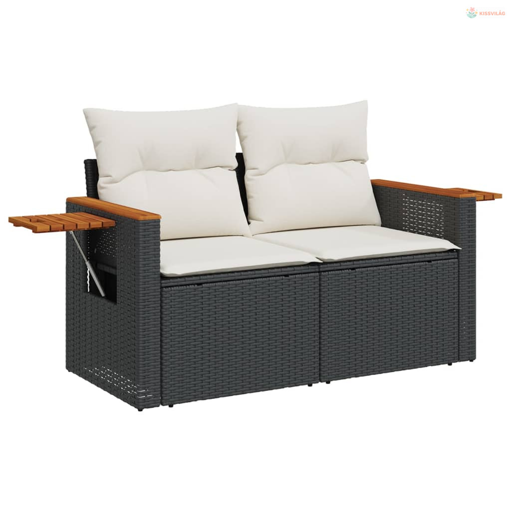 2 személyes fekete polyrattan kerti kanapé párnával