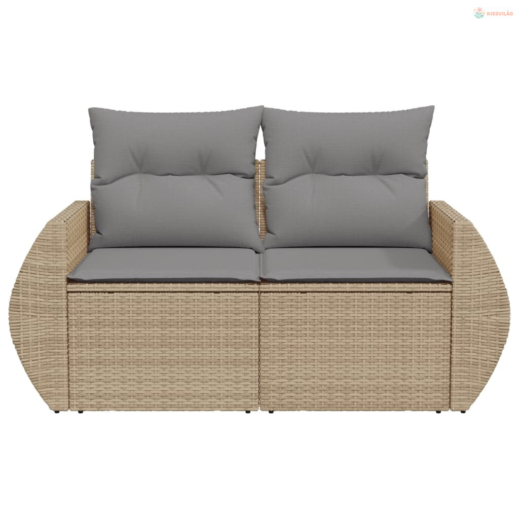 2 személyes bézs polyrattan kerti kanapé párnával