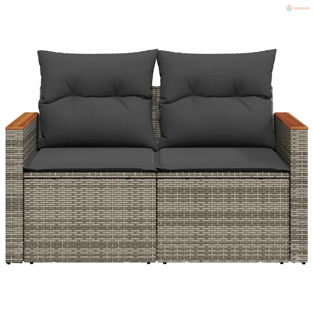 2 személyes szürke polyrattan kerti kanapé párnával