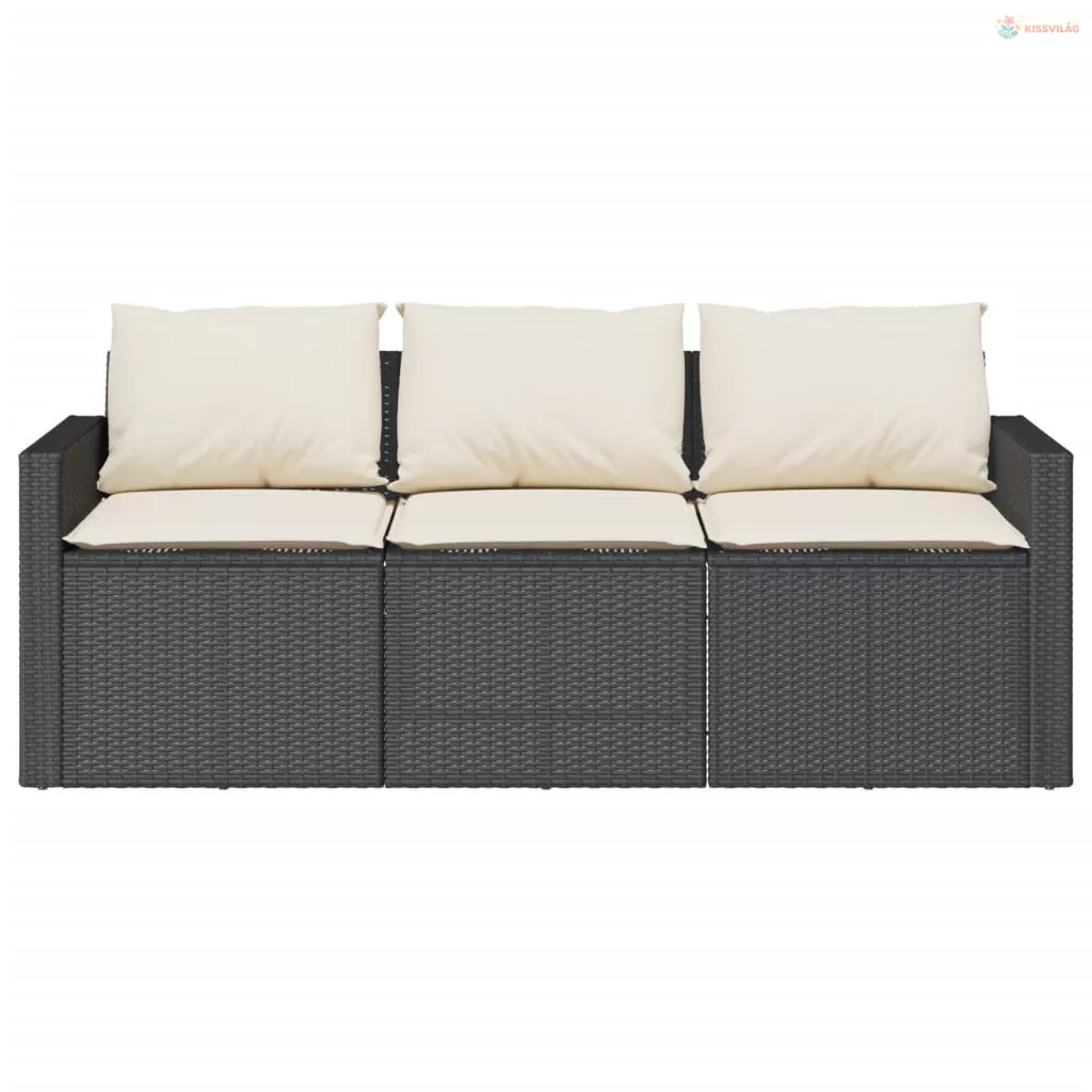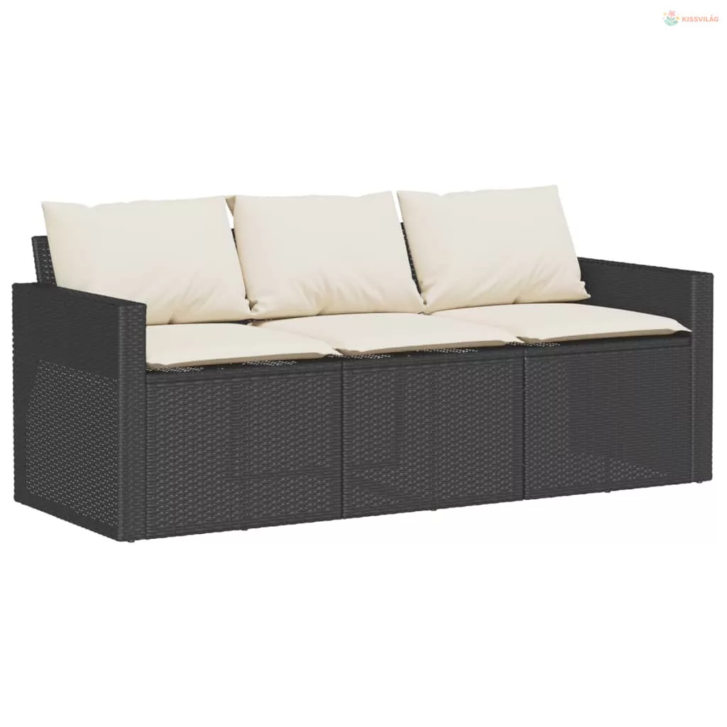 2 részes fekete polyrattan kerti étkezőgarnitúra párnával