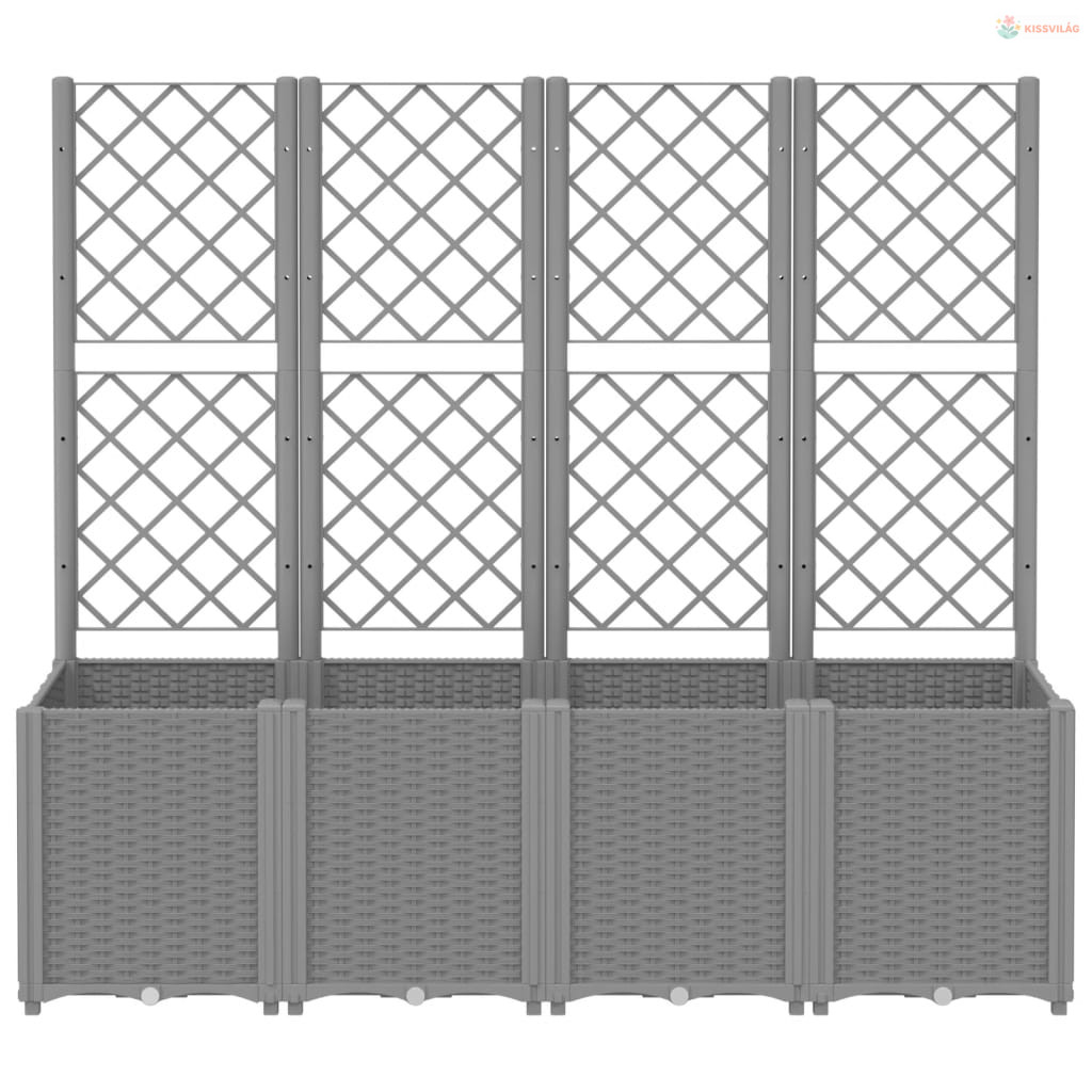 Világosszürke PP rácsos kerti ültetőláda 160 x 40 x 140 cm