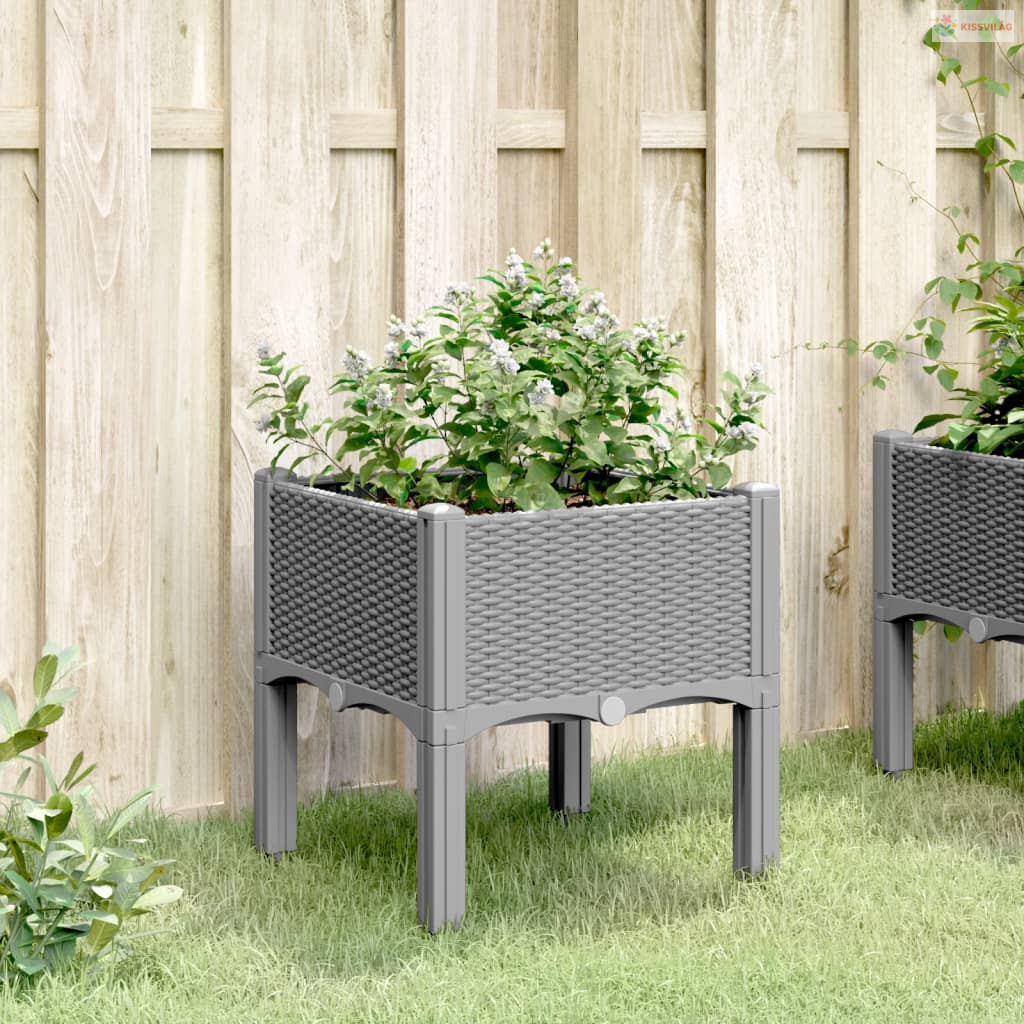 Világosszürke PP rácsos kerti ültetőláda 40 x 40 x 42 cm