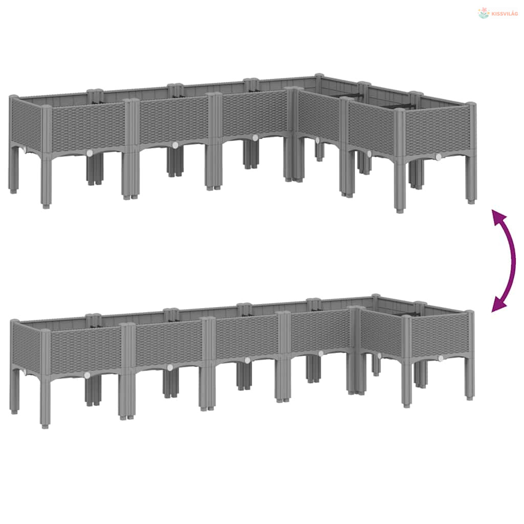 Világosszürke PP rácsos kerti ültetőláda 160 x 120 x 42 cm