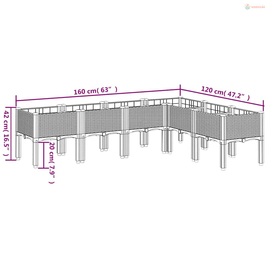 • Magasított kialakítás: Ez az ültetőláda megvédi a növényeket a gyomoktól és kártevőktől az emelt kialakításával.