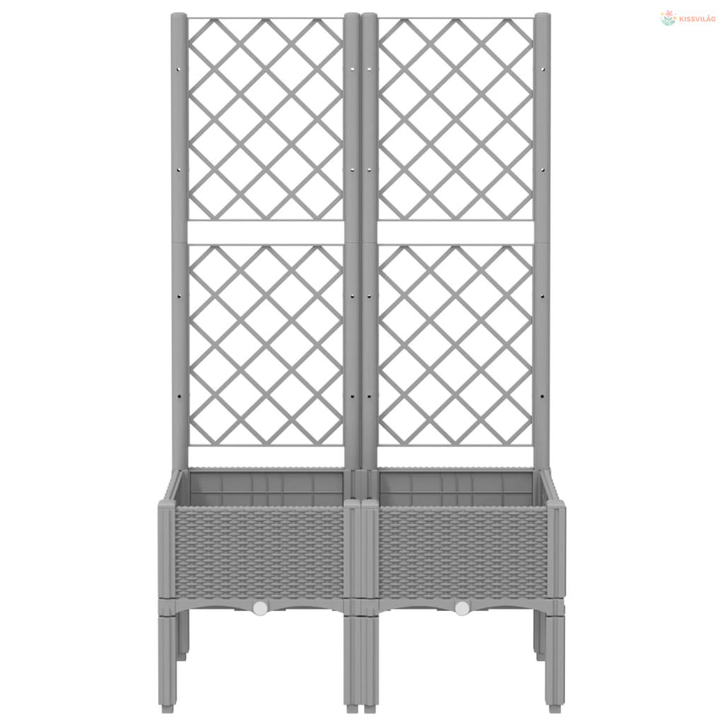 Világosszürke PP rácsos kerti ültetőláda 80 x 40 x 142 cm