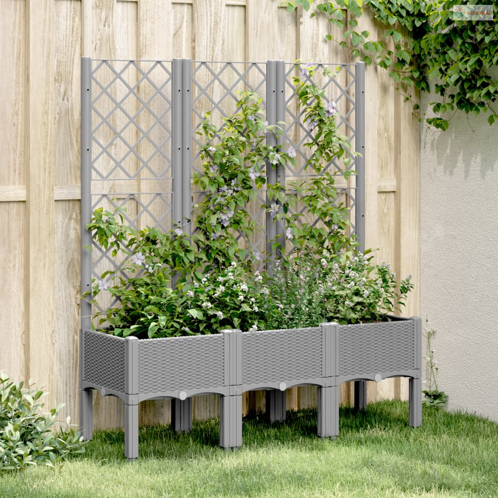 Világosszürke PP rácsos kerti ültetőláda 120 x 40 x 142 cm