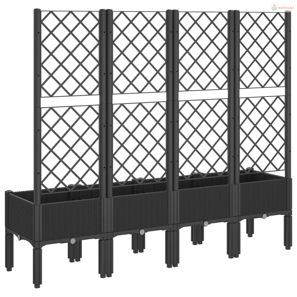 Fekete polipropilén rácsos kerti ültetőláda 160 x 40 x 142 cm