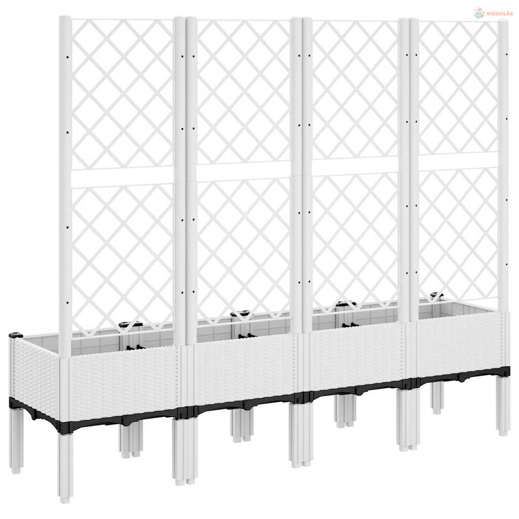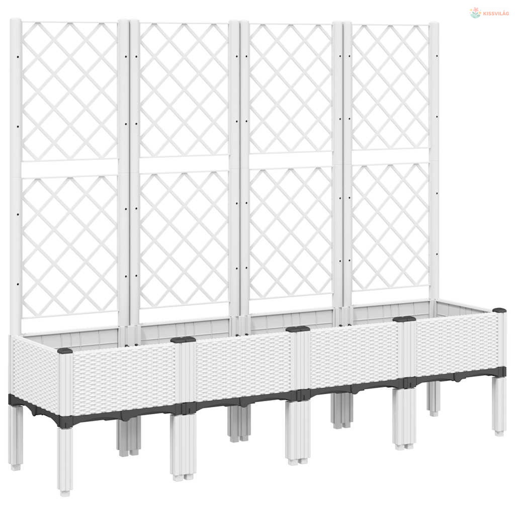 Fehér polipropilén rácsos kerti ültetőláda 160 x 40 x 142 cm