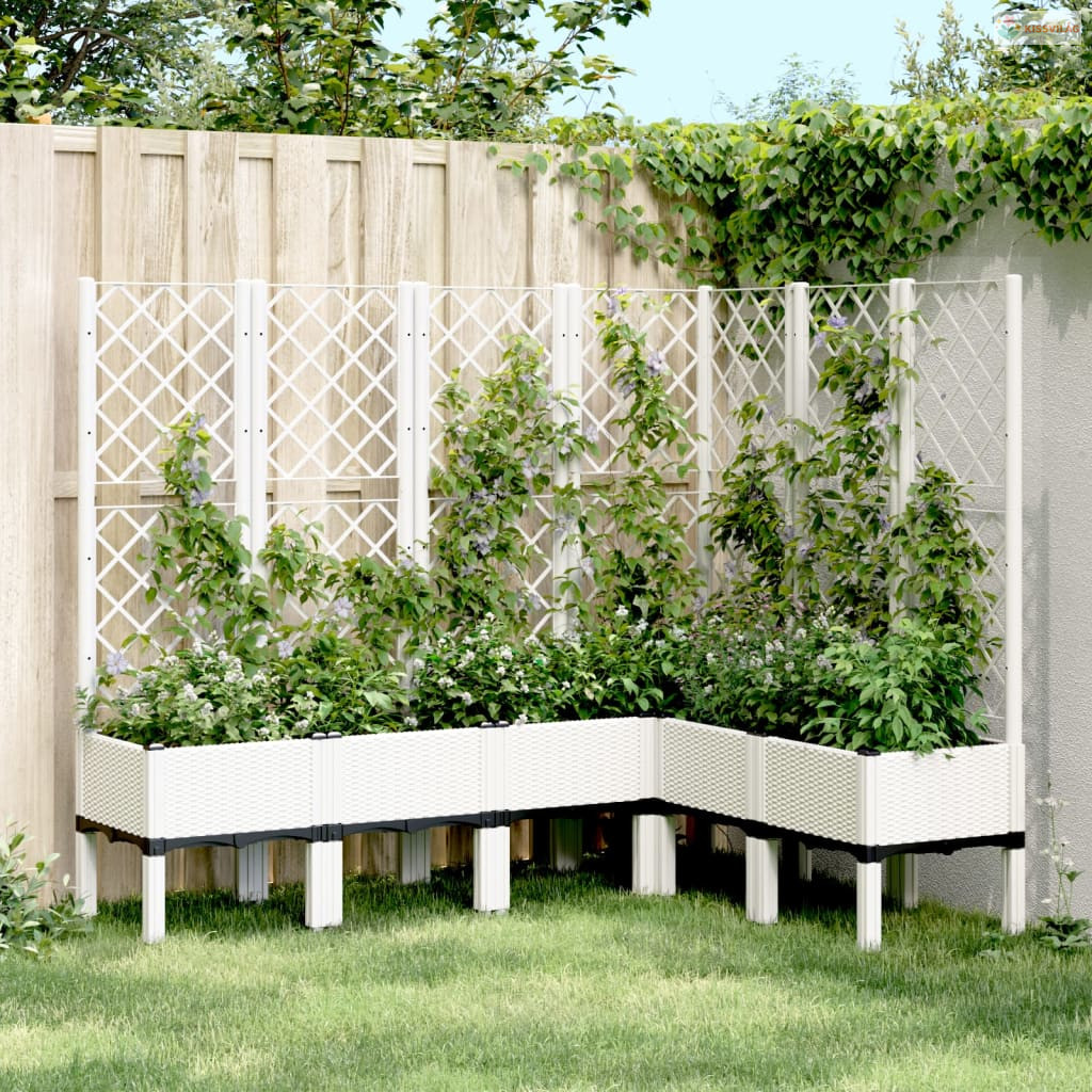 Fehér polipropilén rácsos kerti ültetőláda 160 x 120 x 142 cm