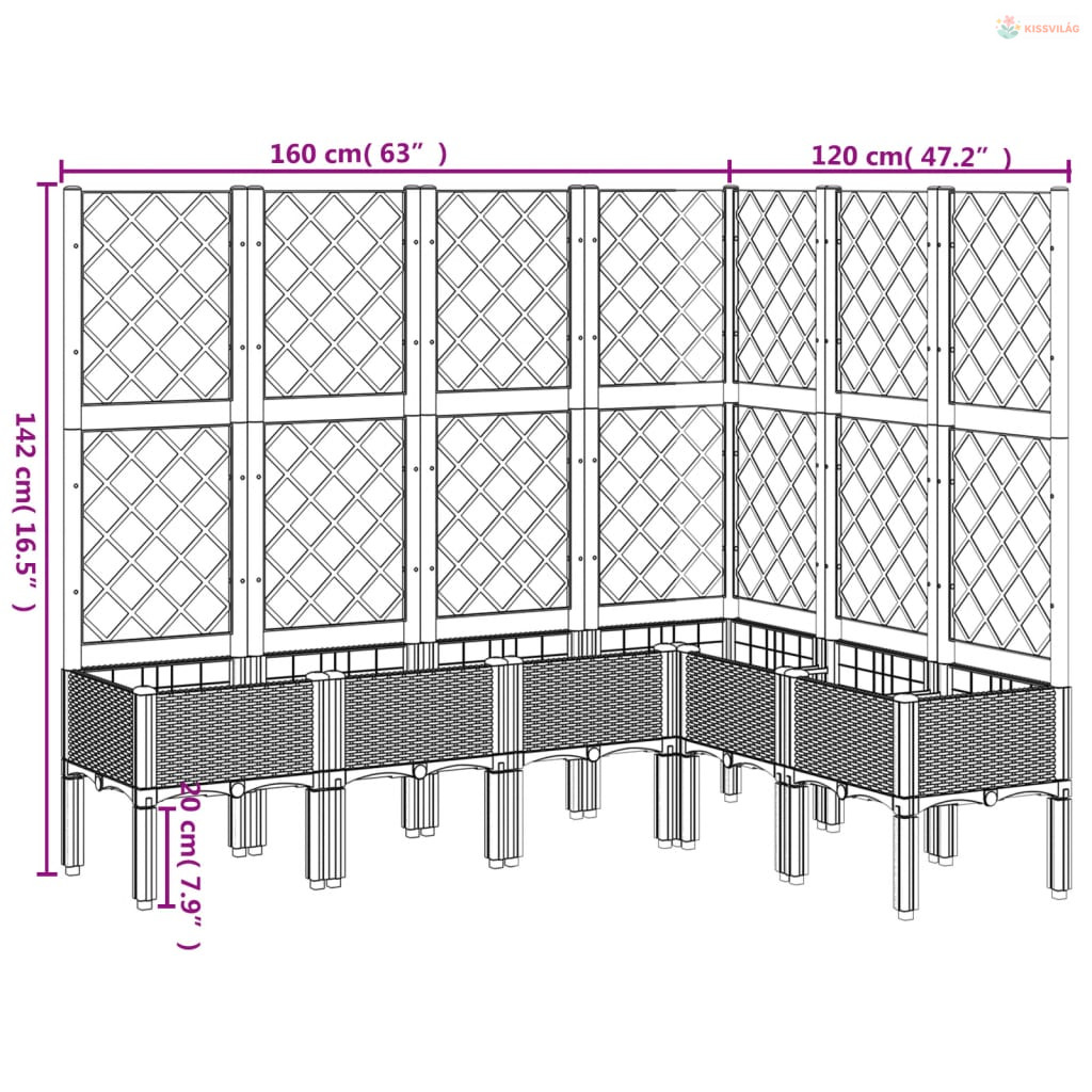 • Praktikus kialakítás: Az ideális alsó réteg segít megtartani a nedvességet, és lehetővé teszi a könnyű vízelvezetést. Emellett a beépített rács nagyszerű támaszt nyújt a kúszónövények, például a paradicsom, a borsó és a rózsa futtatásához.