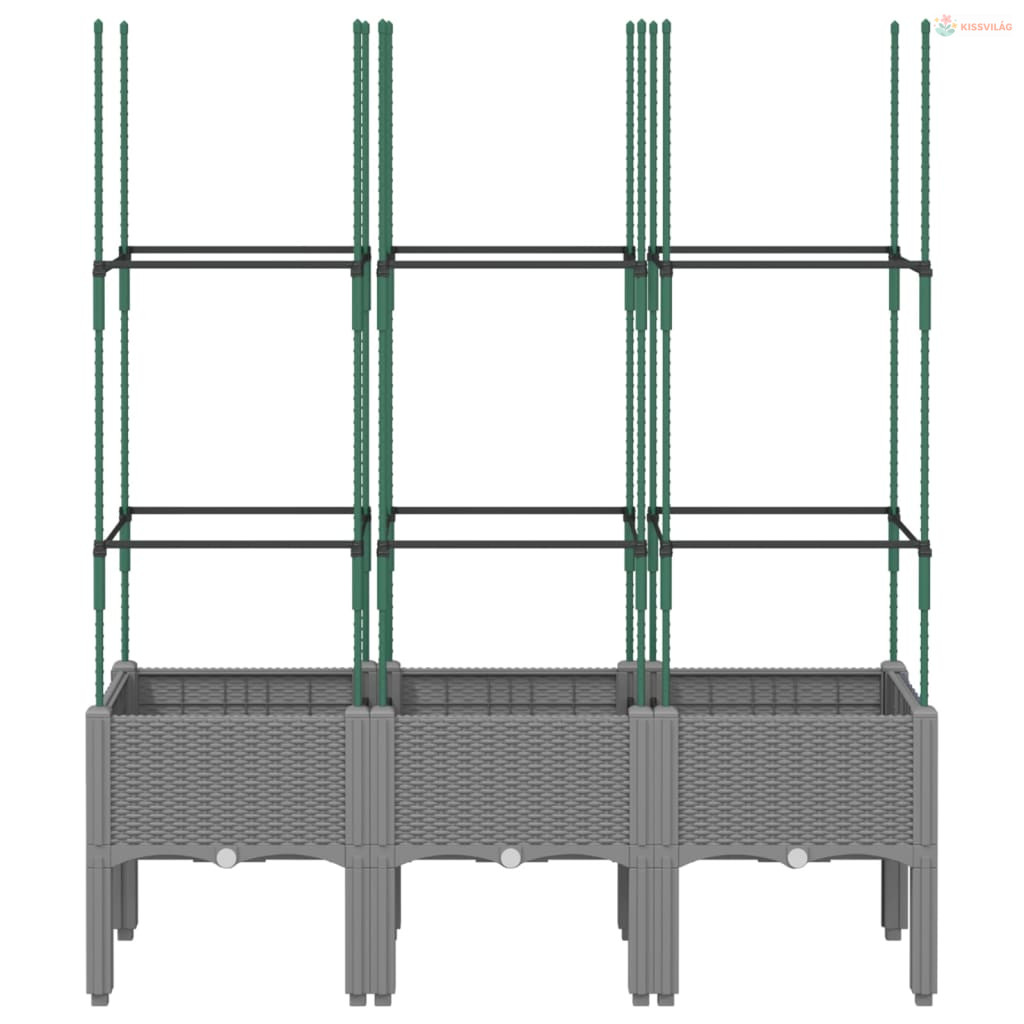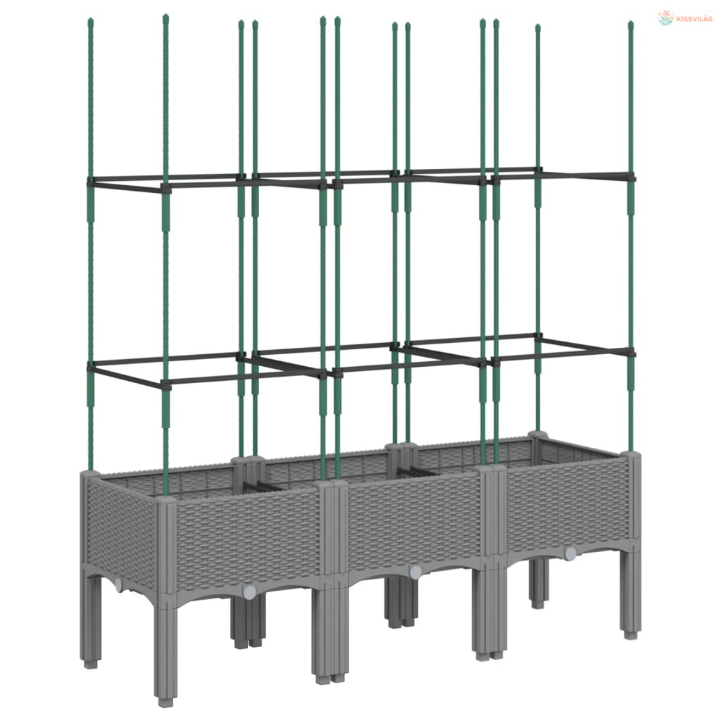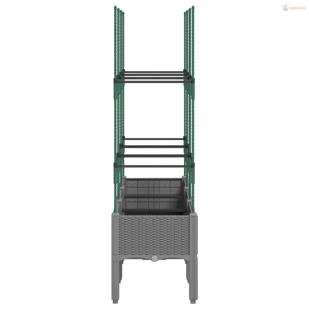 Világosszürke PP rácsos kerti ültetőláda 120 x 40 x 142,5 cm