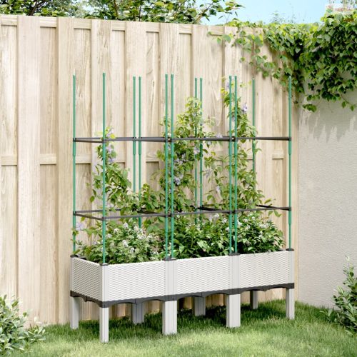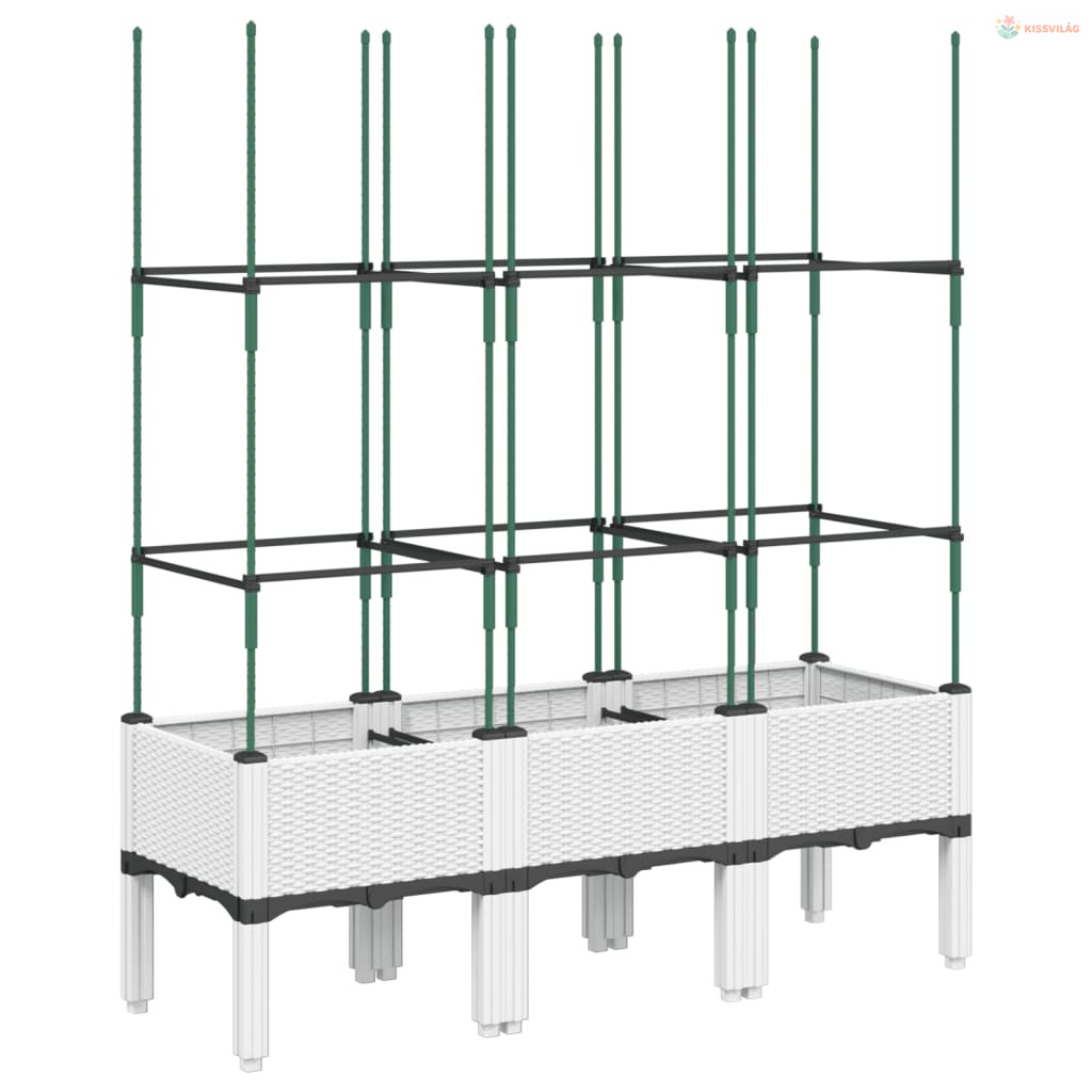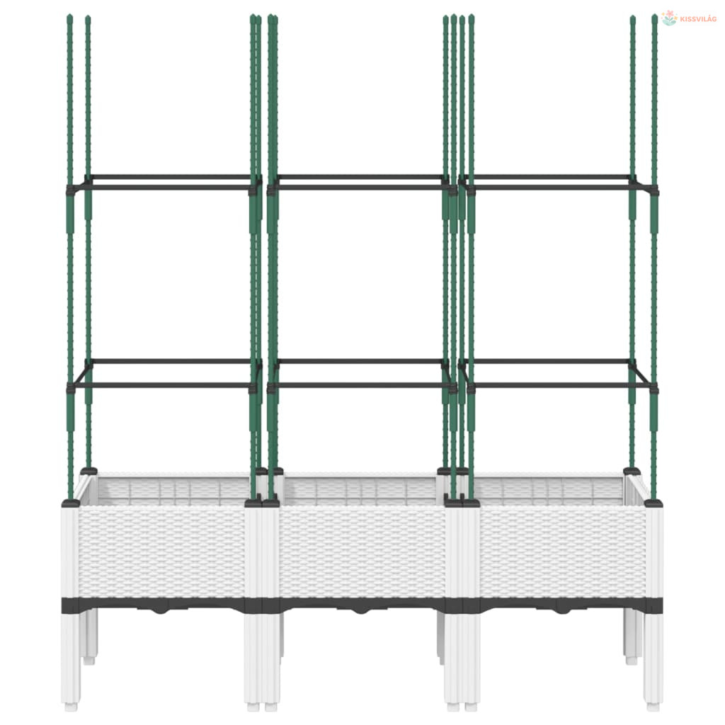 Fehér polipropilén rácsos kerti ültetőláda 120 x 40 x 142,5 cm