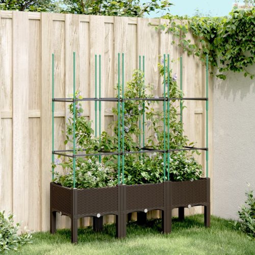 Barna polipropilén rácsos kerti ültetőláda 120 x 40 x 142,5 cm