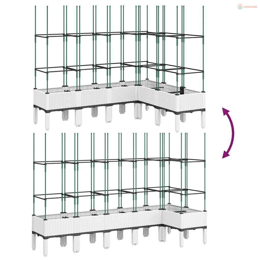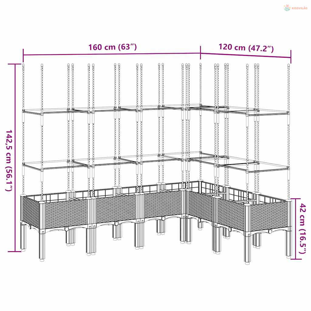 • Praktikus kialakítás: Az ideális alsó réteg segít megtartani a nedvességet, és lehetővé teszi a könnyű vízelvezetést. Emellett a beépített rács nagyszerű támaszt nyújt a kúszónövények, például a paradicsom, a borsó és a rózsa futtatásához.