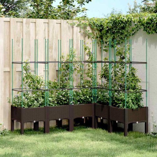 Barna polipropilén rácsos kerti ültetőláda 160 x 120 x 142,5 cm