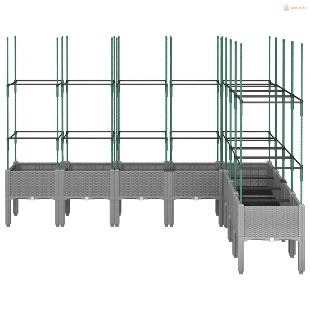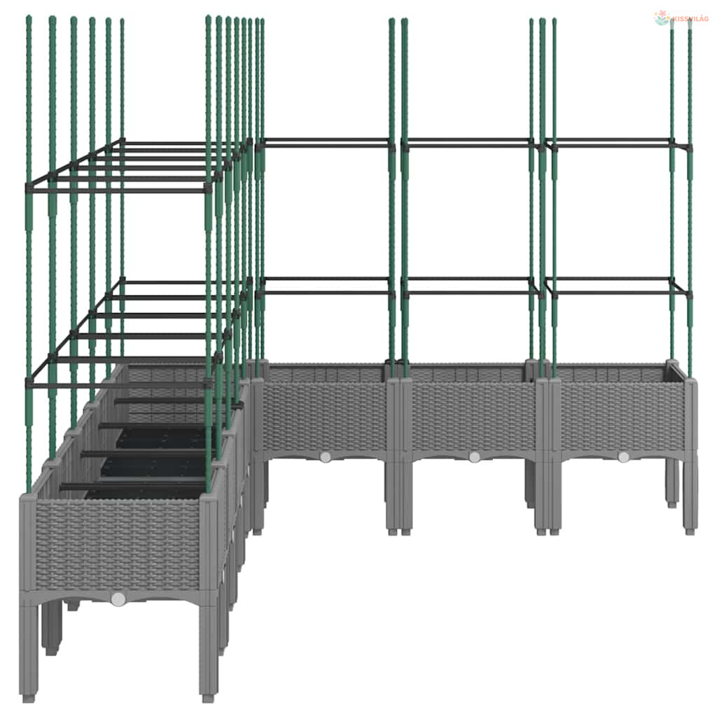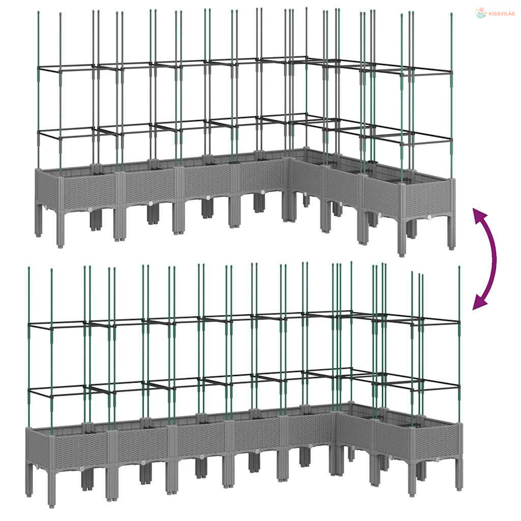 Világosszürke PP rácsos kerti ültetőláda 200 x 160 x 142,5 cm