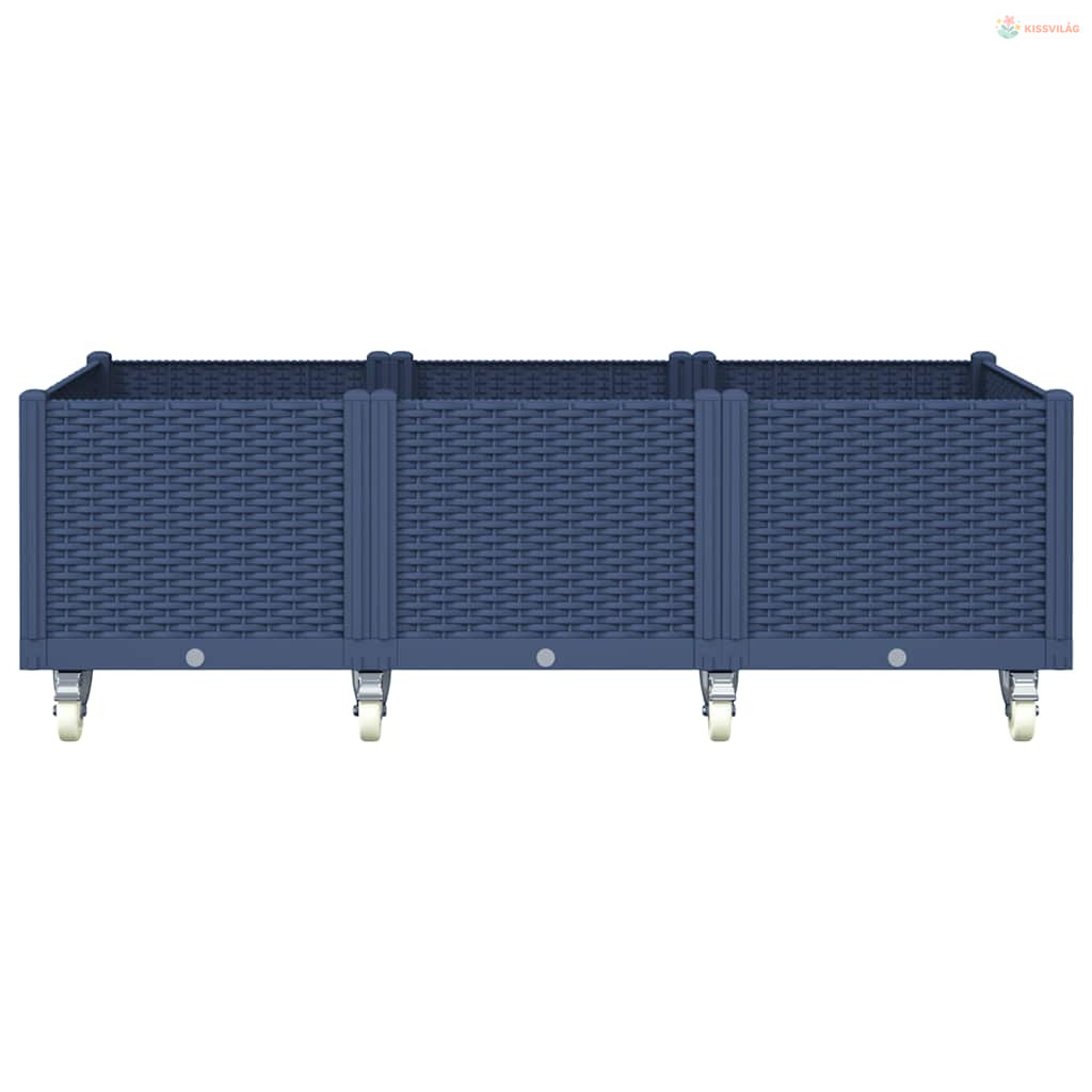 Kékszürke polipropilén rácsos kerekes ültetőláda 150 x 80 x 54 cm