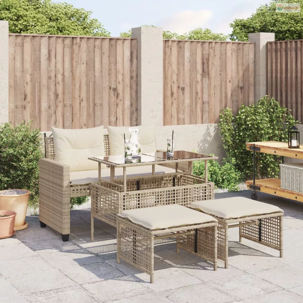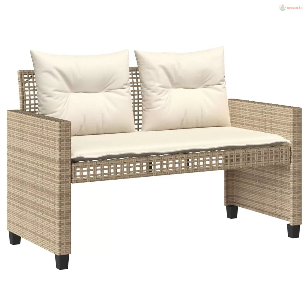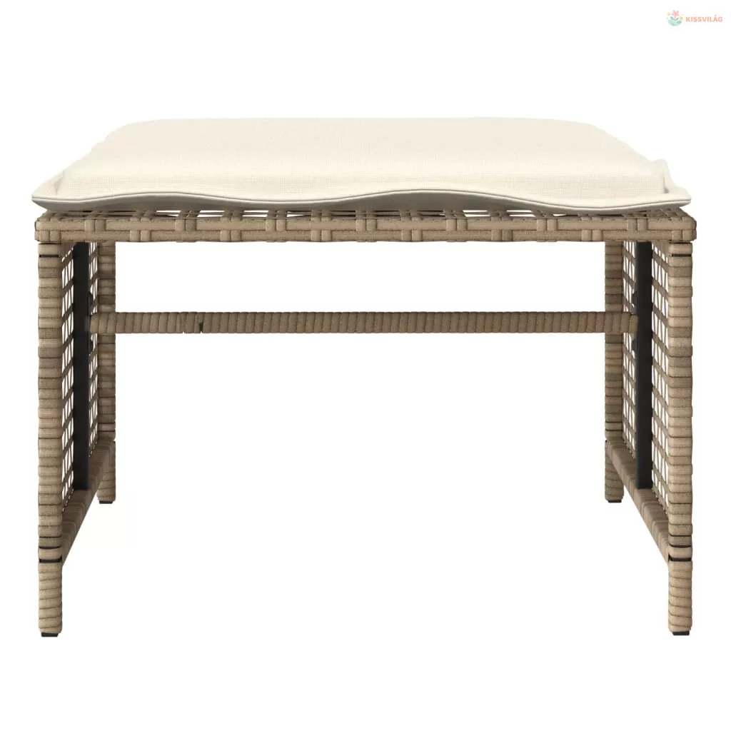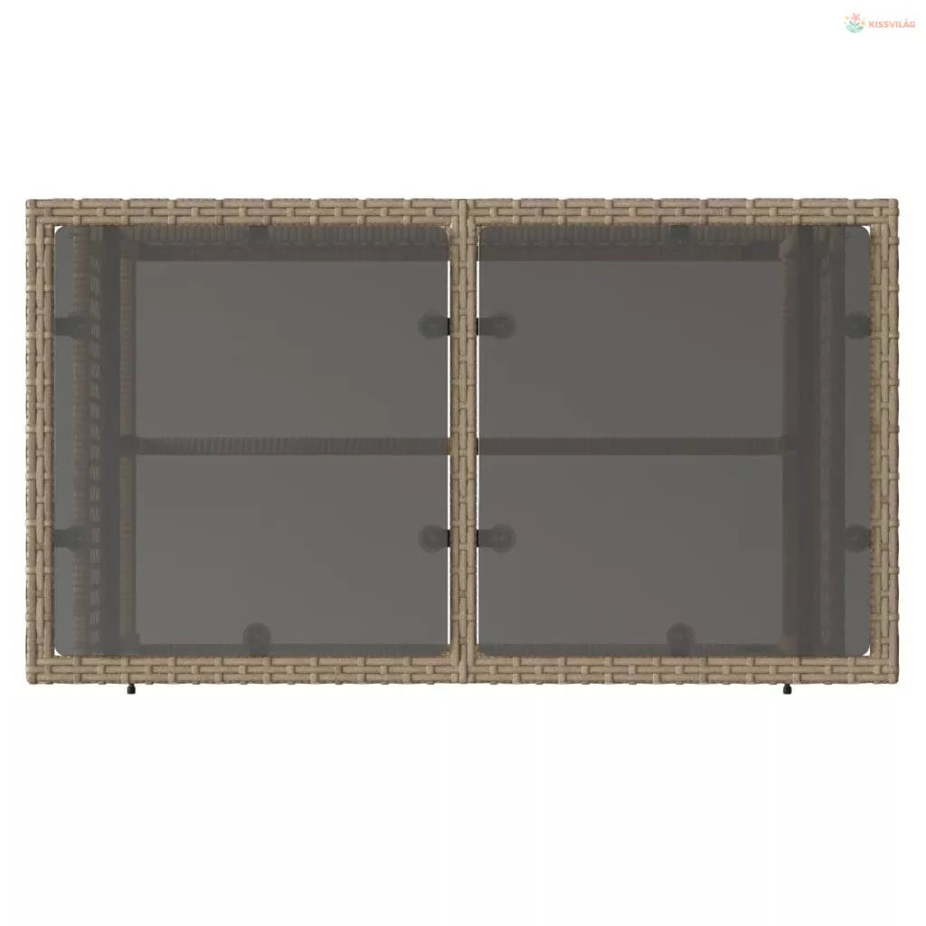 4 részes bézs polyrattan üveg kerti ülőgarnitúra párnákkal
