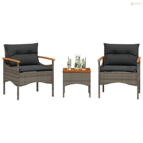 3 részes szürke polyrattan kerti ülőgarnitúra párnákkal