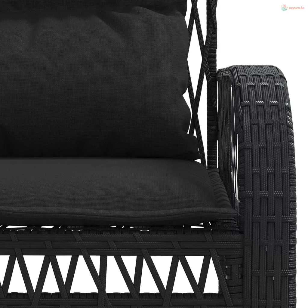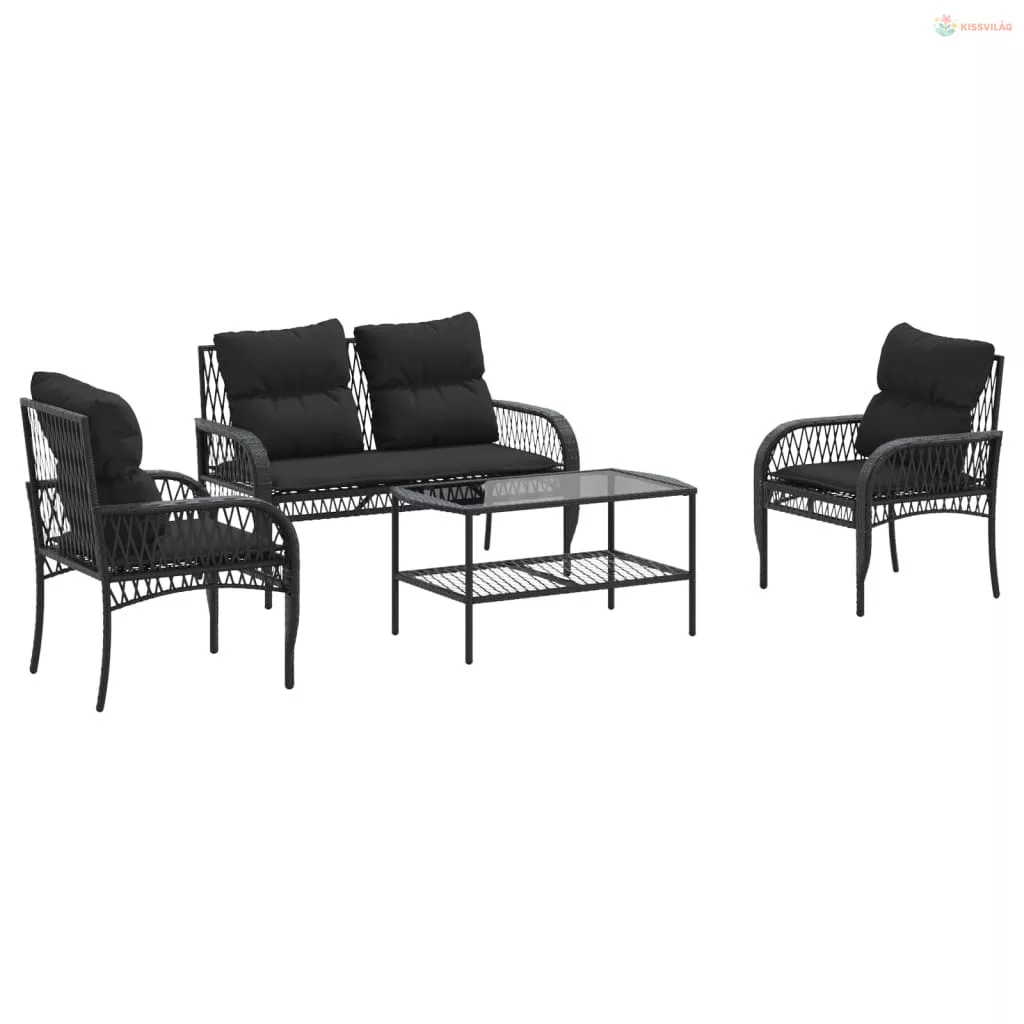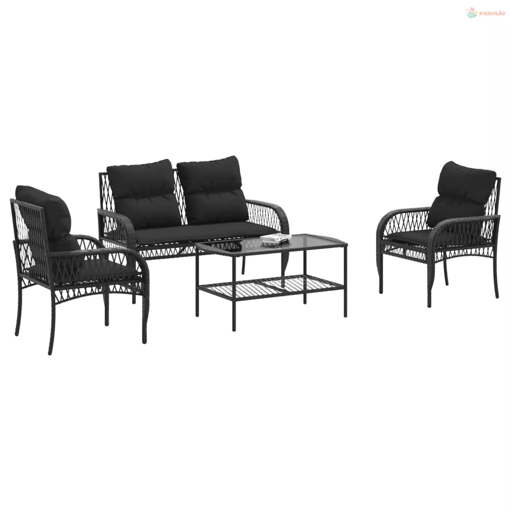 4 részes fekete polyrattan kerti ülőgarnitúra párnákkal