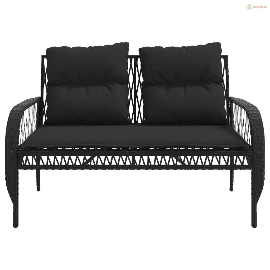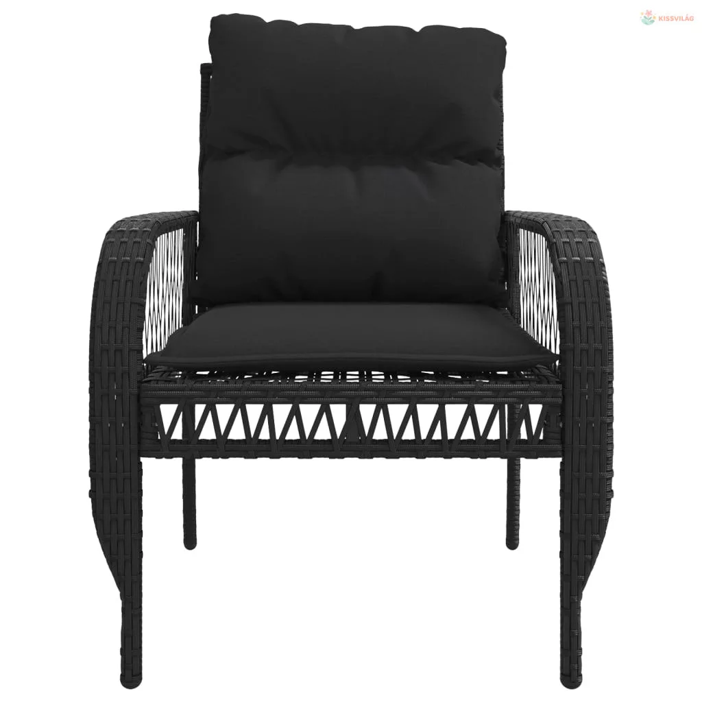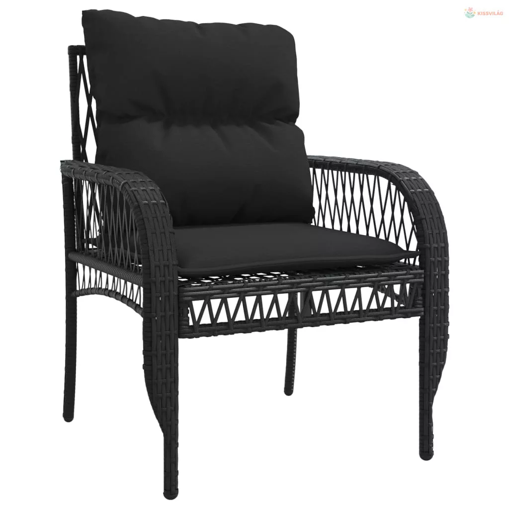 4 részes fekete polyrattan kerti ülőgarnitúra párnákkal