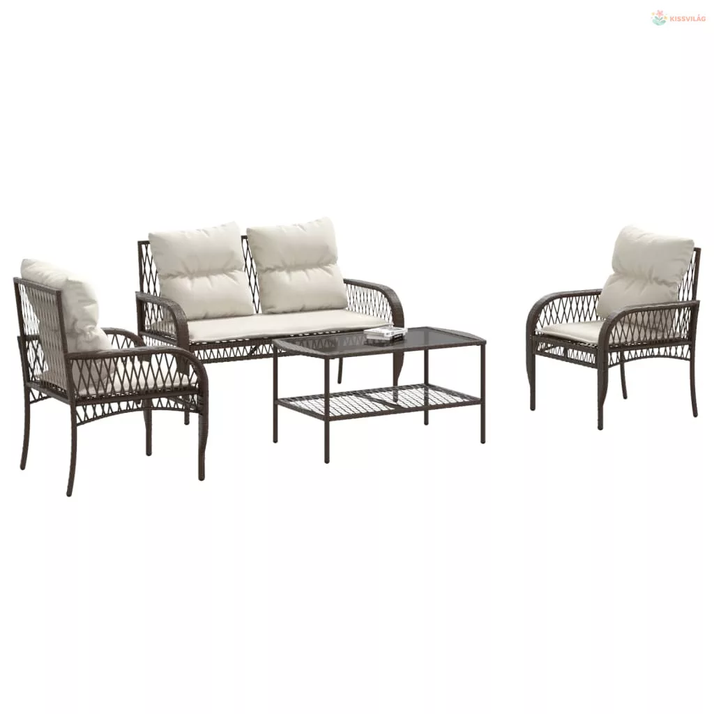4 részes barna polyrattan kerti ülőgarnitúra párnákkal