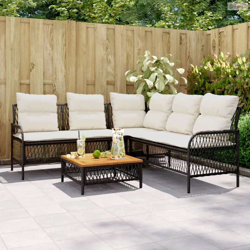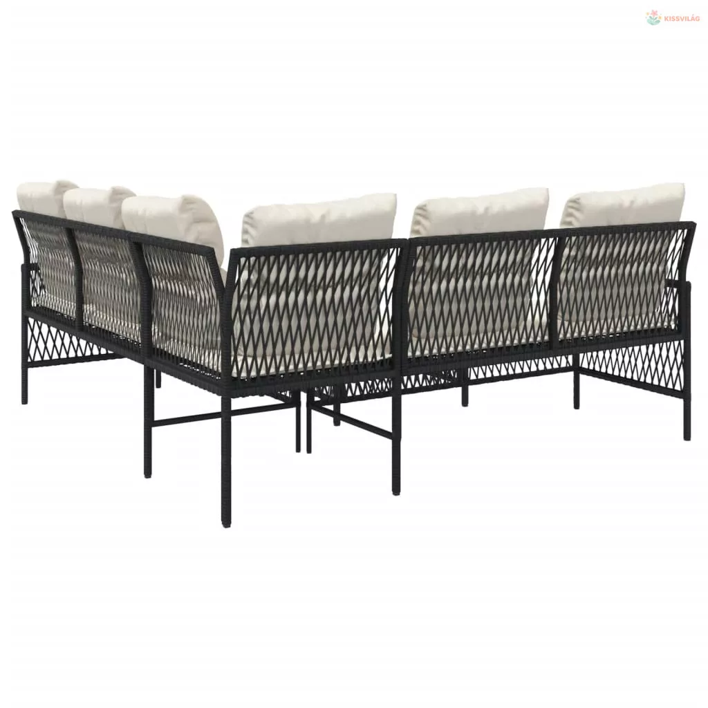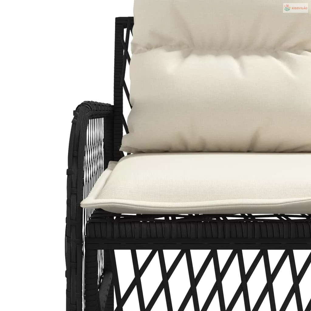 2 részes fekete polyrattan kerti ülőgarnitúra párnával