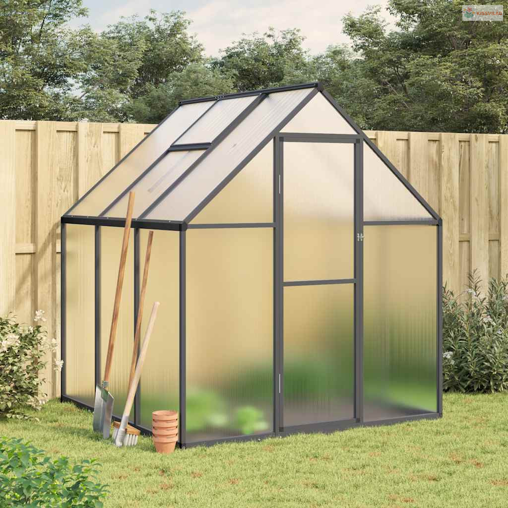 • Időjárásálló és masszív váz: Az üvegház váza rozsda- és időjárásálló alumíniumból készült a nagy szélállóság és stabilitás érdekében.