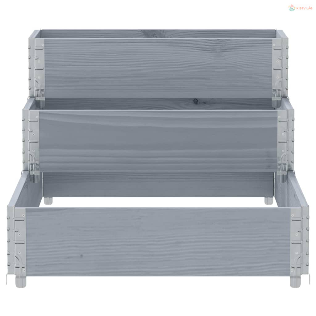 3 szintes szürke tömör fenyőfa magaságyás 120 x 80 cm