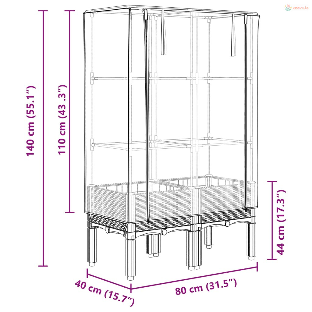 • Stabil felépítés: A polipropilénből készült magaságyás tetején egy stabil vascső keret található, amely lehetővé teszi a növények számára, hogy növekedjenek és felkússzanak rajta.