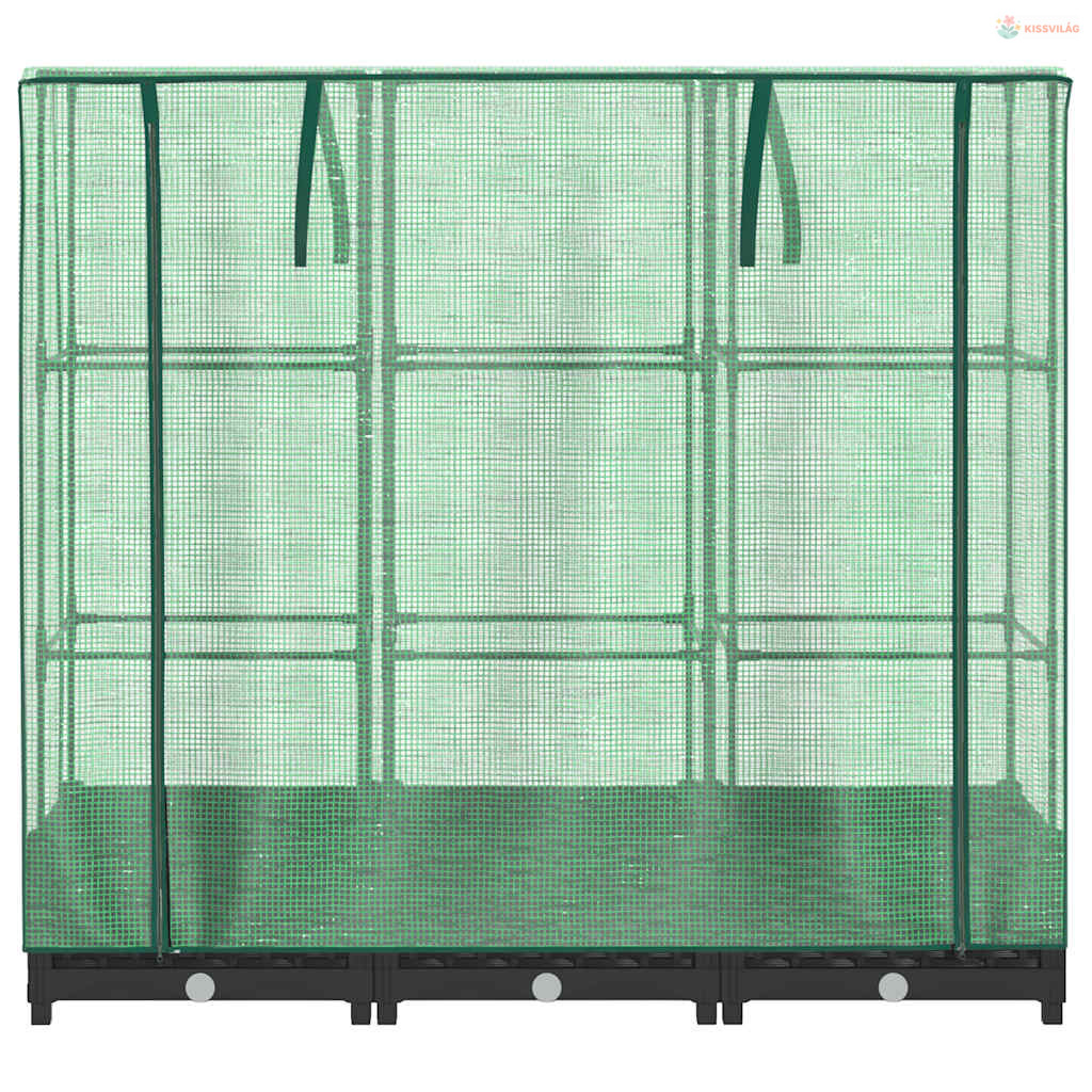 • Masszív konstrukció: A polipropilénből készült magaságyás tetején egy masszív vascső váz található, amely lehetővé teszi a növények növekedését és kúszását rajta keresztül.