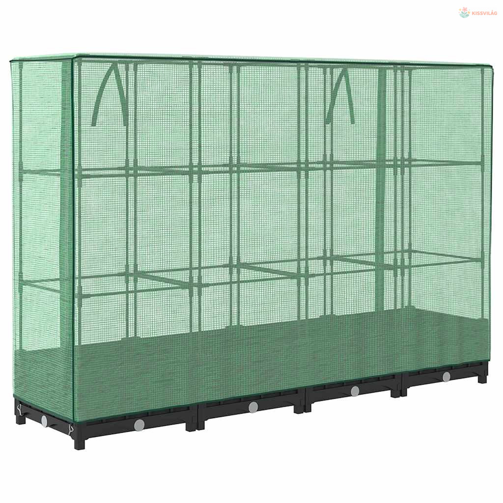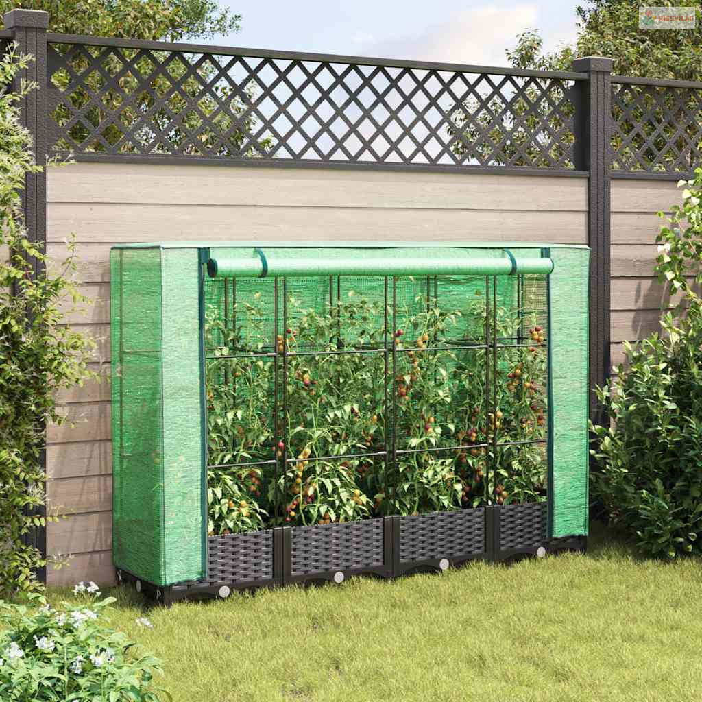 • Masszív konstrukció: A polipropilénből készült magaságyás tetején egy masszív vascső váz található, amely lehetővé teszi a növények növekedését és kúszását rajta keresztül.
