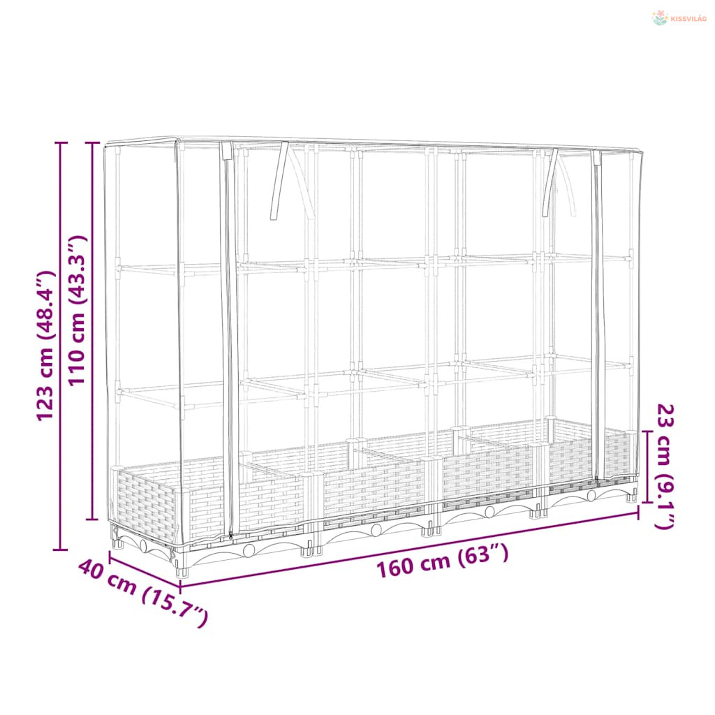 • Üvegház méretei: 160 x 40 x 110 cm (H x Sz x M)