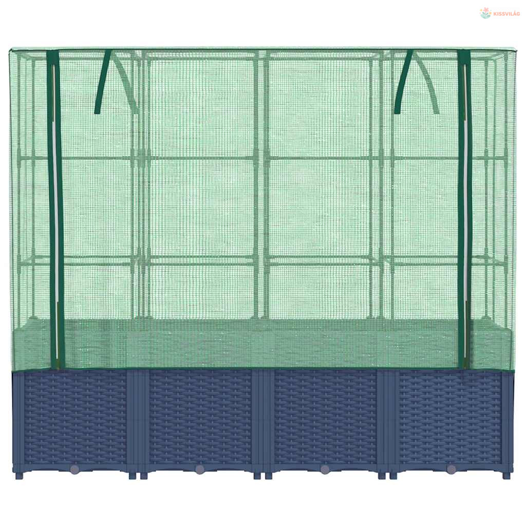 • Funkcionális takaró: A magaságyás vízálló polietilén takaróval rendelkezik, amely megvédi növényeit a szélsőséges hőmérsékletektől, és távol tartja a rovarokat, madarakat és kisállatokat.