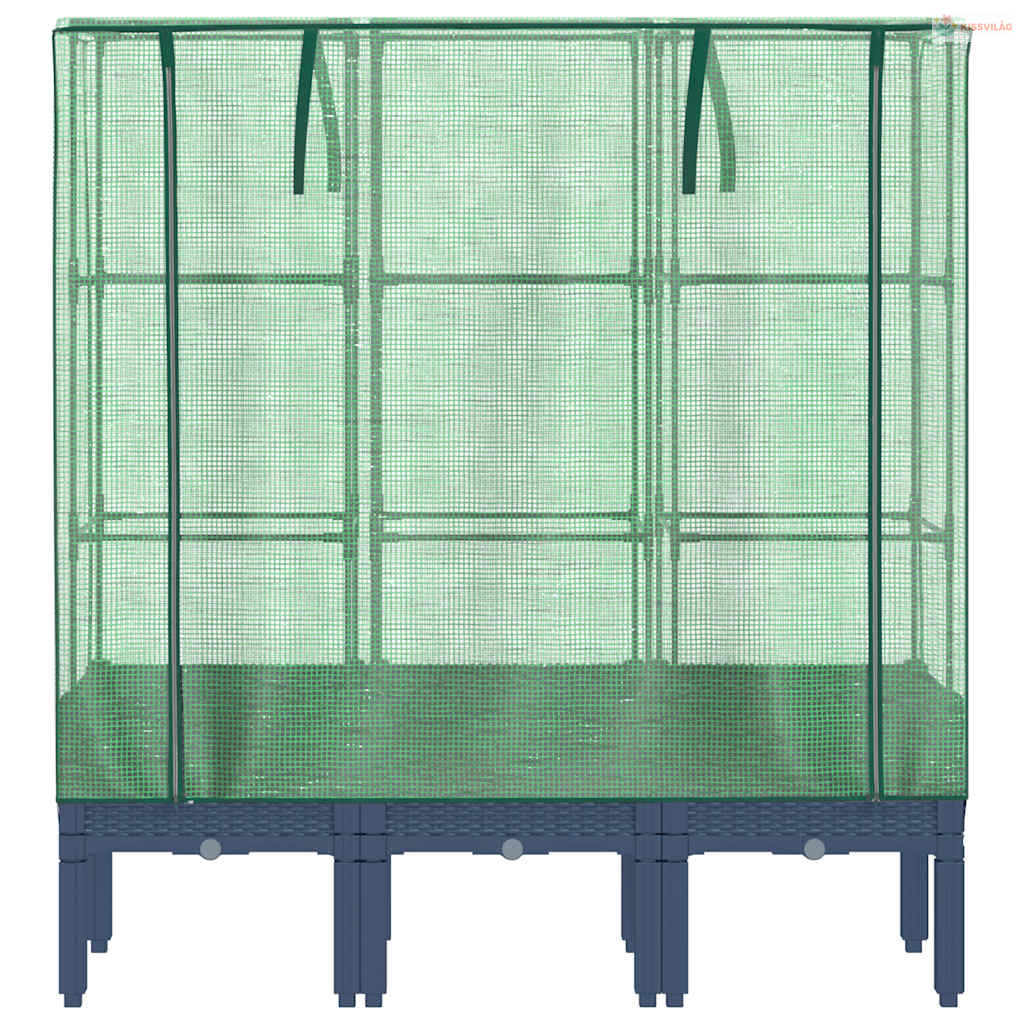 • Stabil felépítés: A polipropilénből készült magaságyás tetején egy stabil vascső keret található, amely lehetővé teszi a növények számára, hogy növekedjenek és felkússzanak rajta.