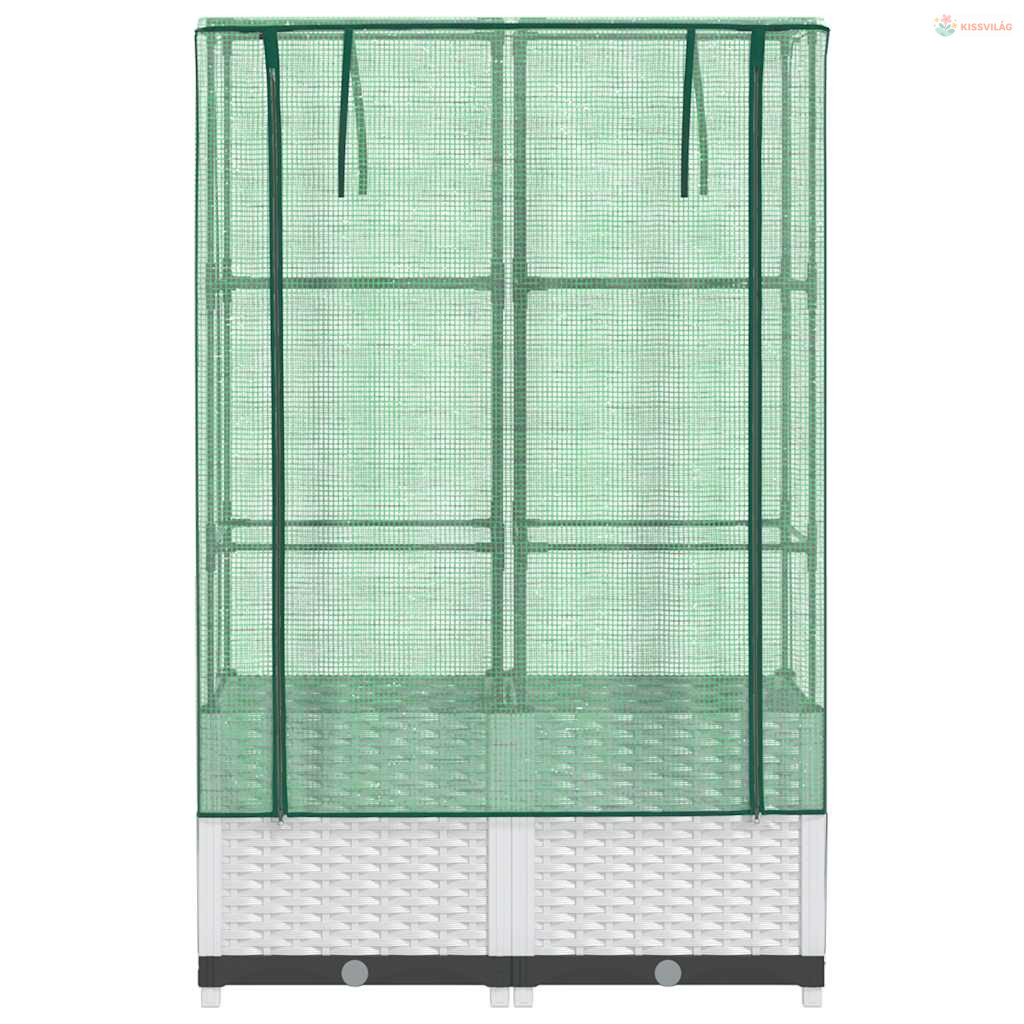• Praktikus borítás: A magaságyás vízálló polietilén borítással rendelkezik, amely megvédi a növényeket a szélsőséges hőmérséklettől, és távol tartja a rovarokat, a madarakat, és a kisállatokat.