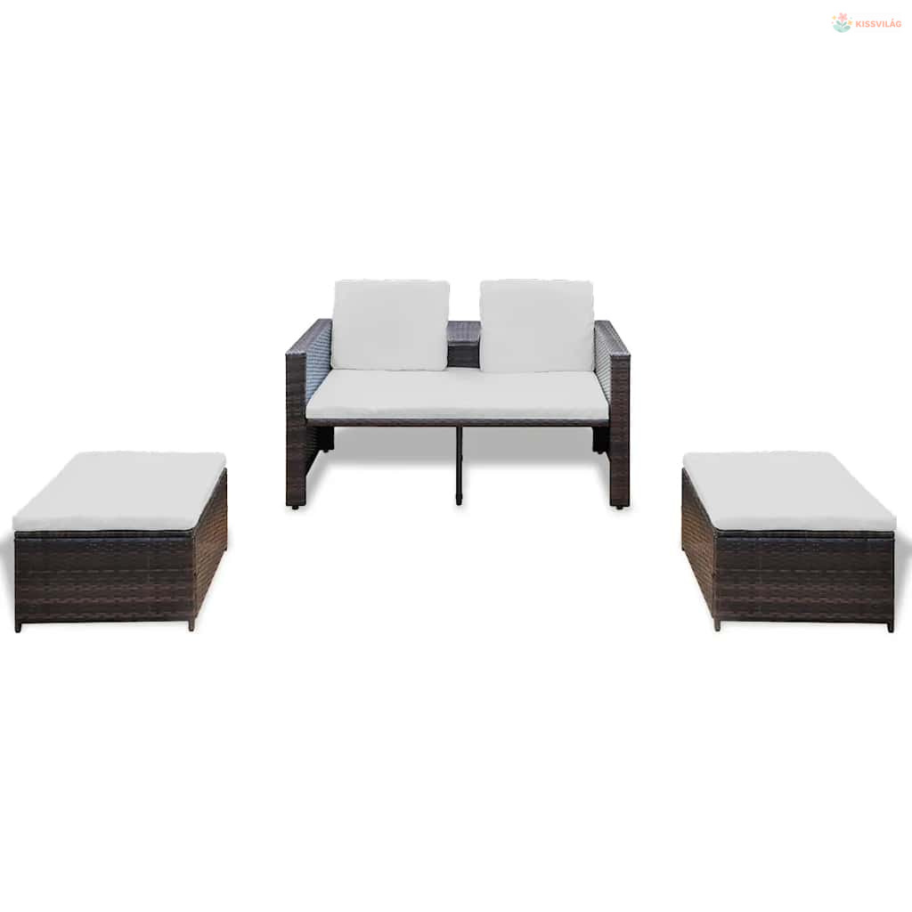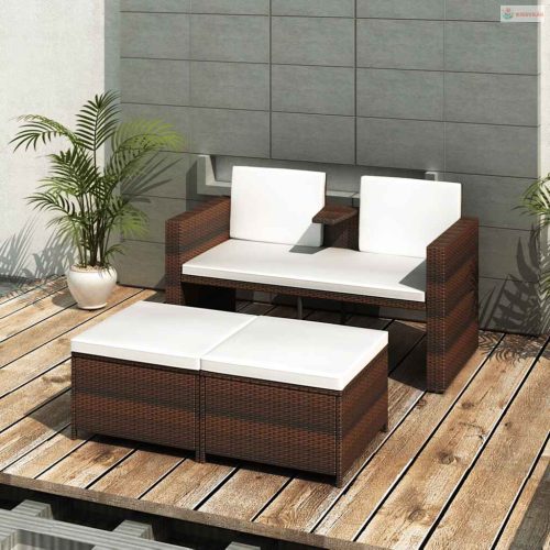 4-részes barna polyrattan kerti bútorszett párnákkal