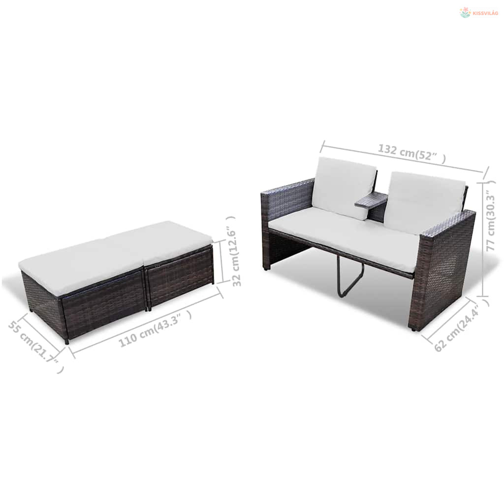 • Anyaga: PE rattan / könnyűsúlyú acél