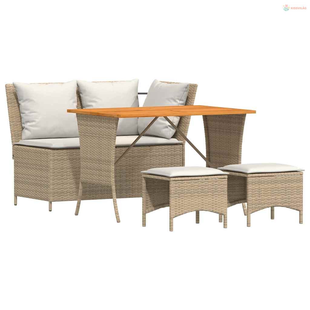 4 részes bézs polyrattan kerti étkezőgarnitúra párnákkal