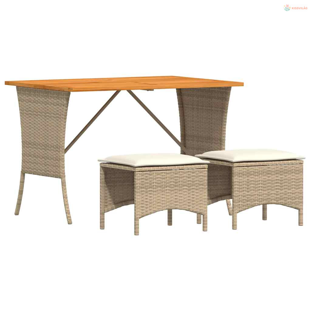 3 részes bézs polyrattan kerti étkezőgarnitúra párnákkal