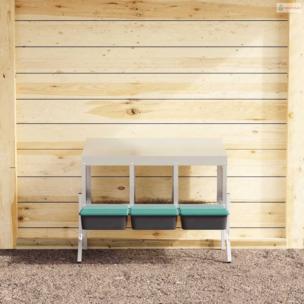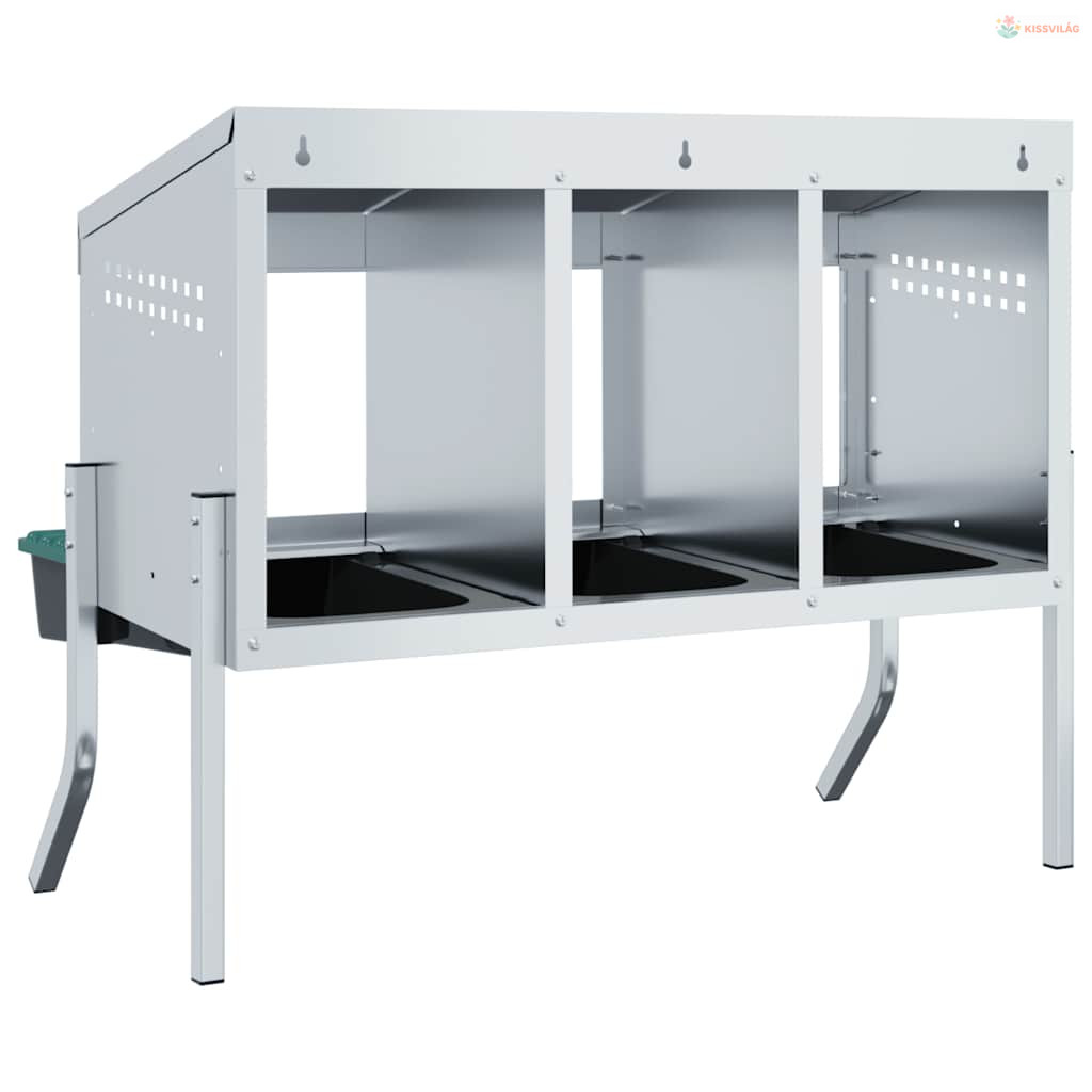 3 rekeszes horganyzott acél csirkefészkelőláda lábakkal