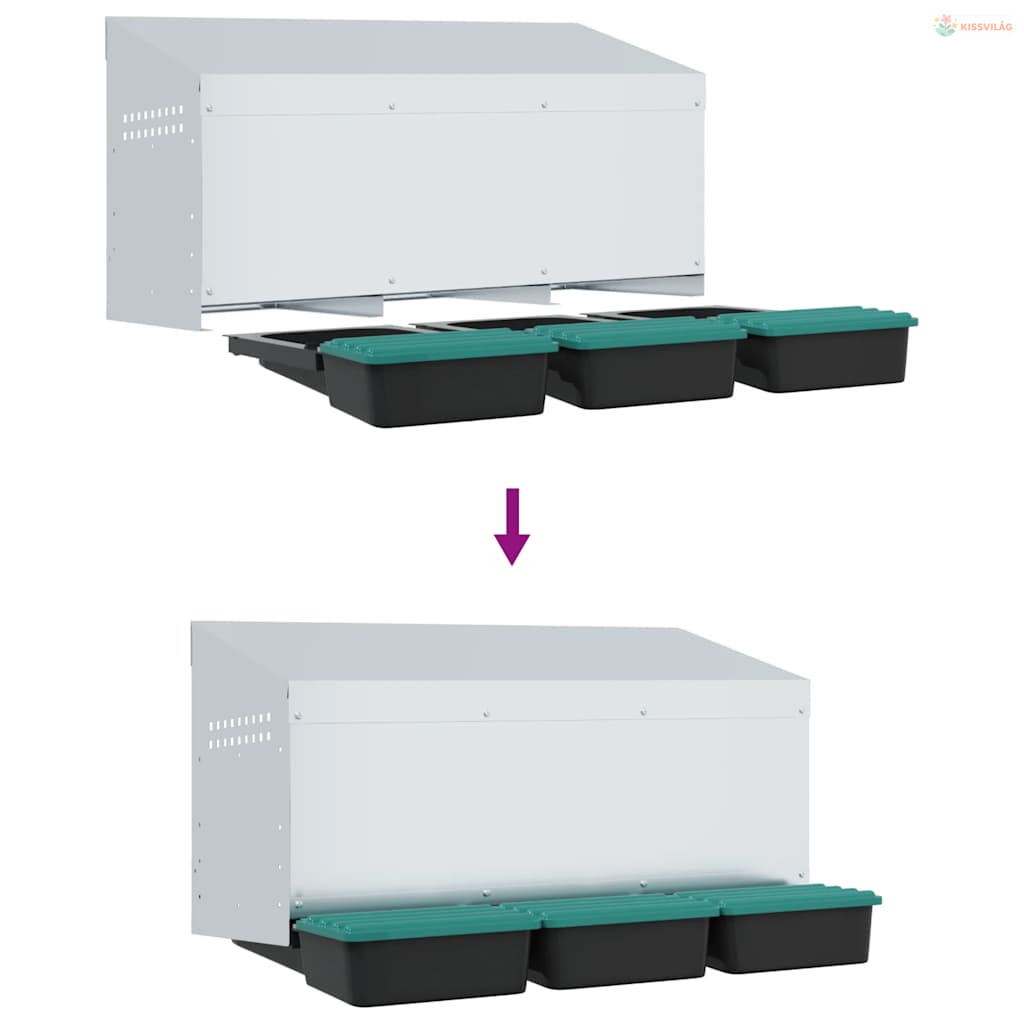 3 rekeszes, falra szerelhető, horganyzott acél csirkefészkelőláda