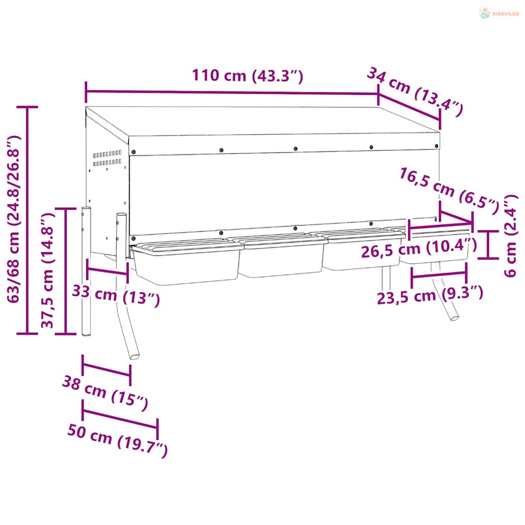 4 rekeszes horganyzott acél csirkefészkelőláda lábakkal