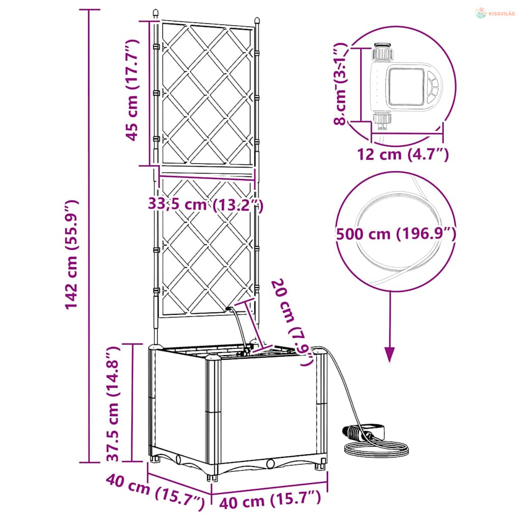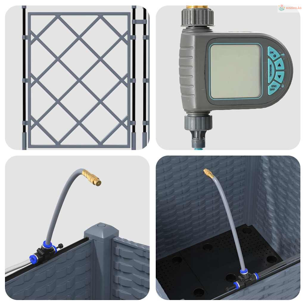 • Öntöző rendszer: Beépített öntöző megoldása fenntartja a növények optimális növekedését az állandó nedvességgel. Ideális olyanoknak, akiknek sűrű a programjuk, mégis szeretnék egészséges növényeket, anélkül, hogy naponta öntözniük kellene.