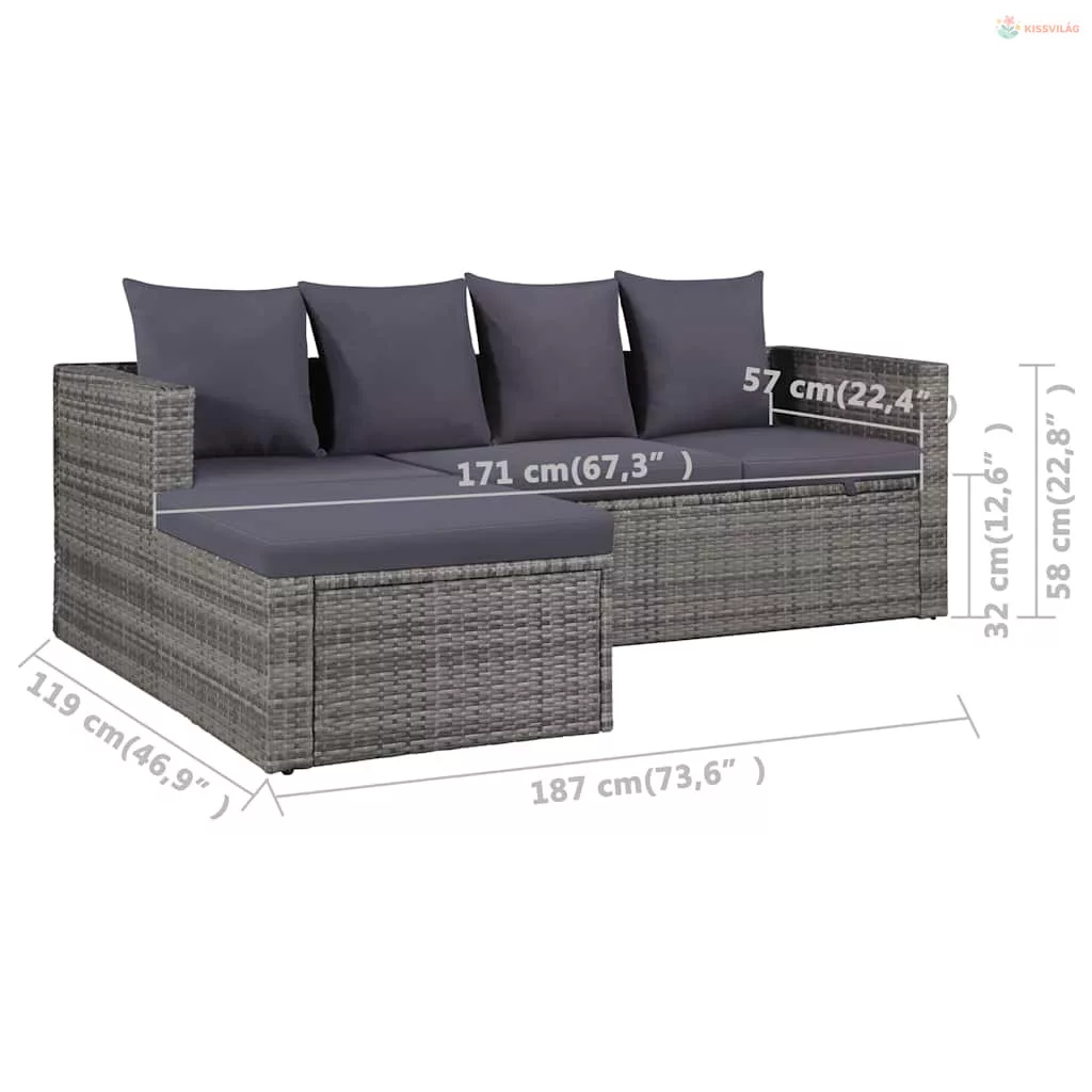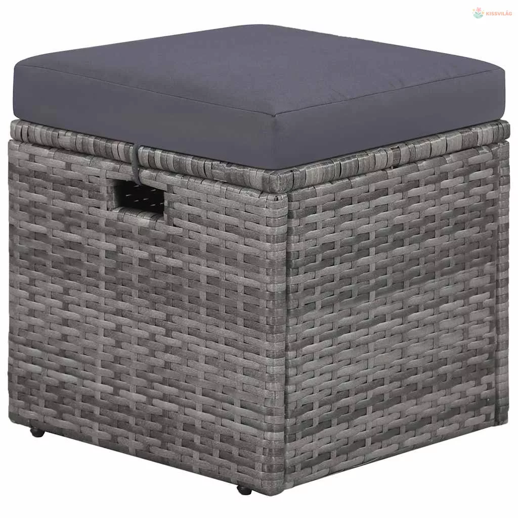 4-részes szürke polyrattan kerti bútorszett párnákkal
